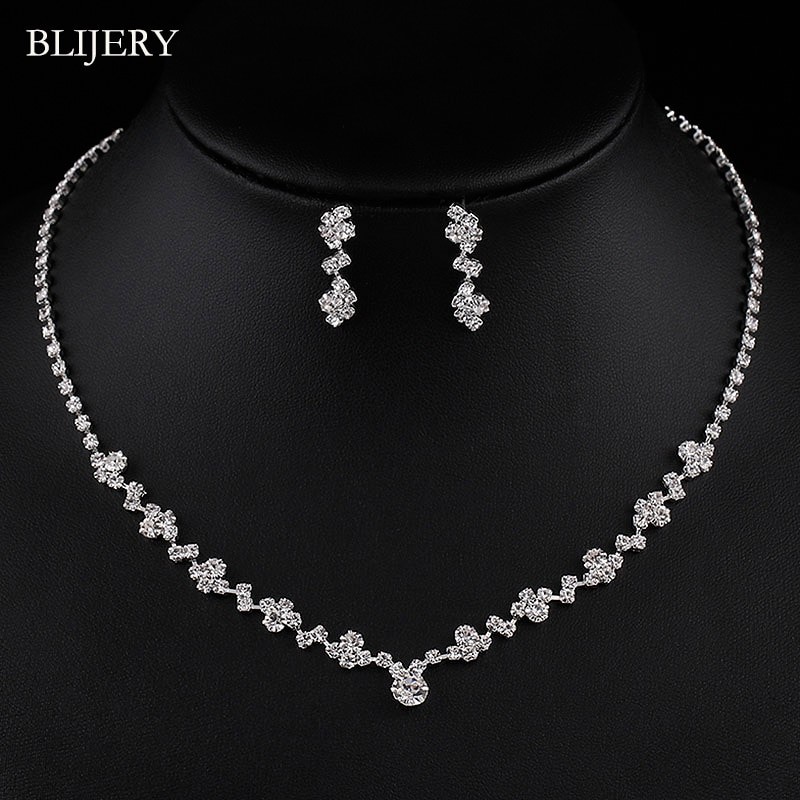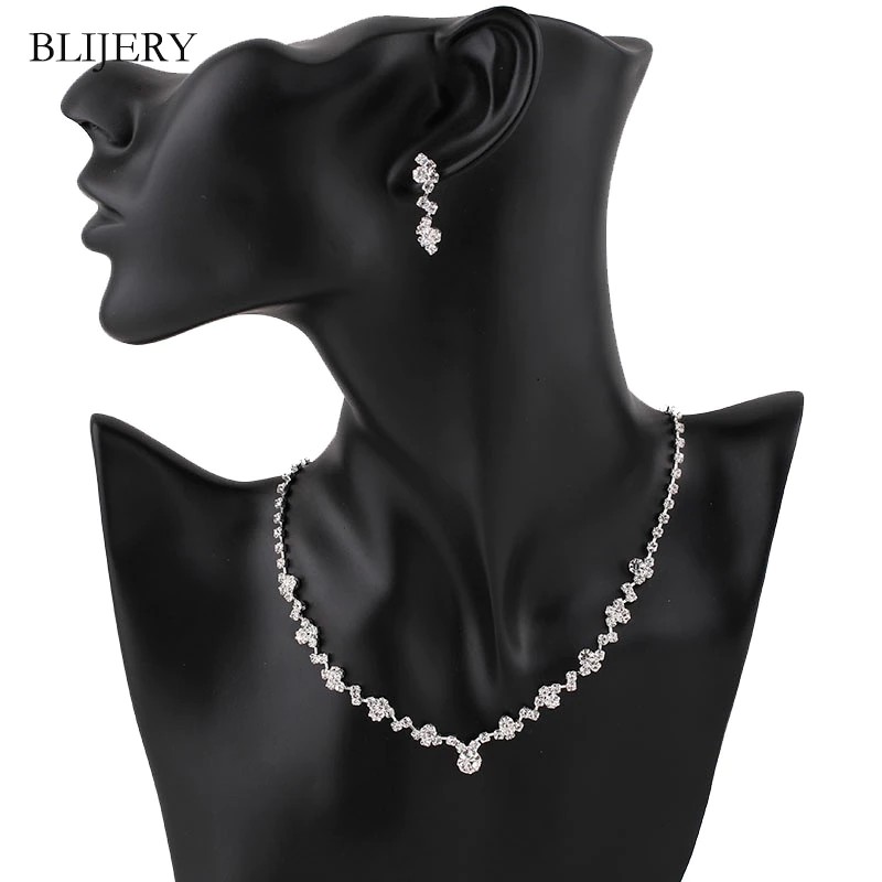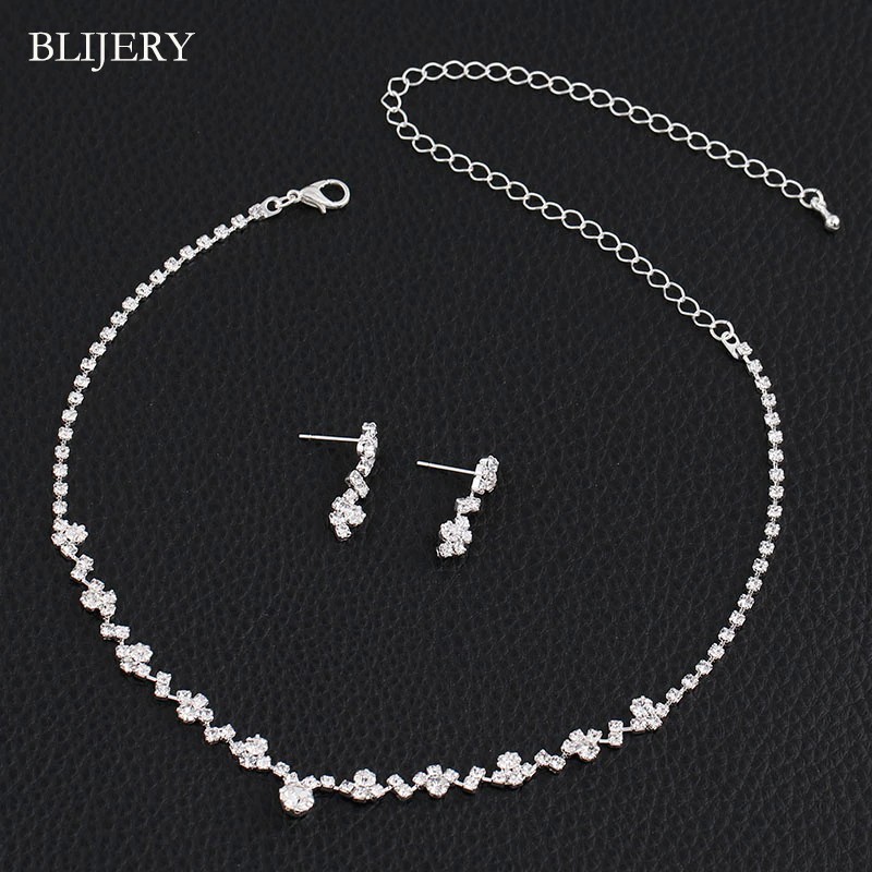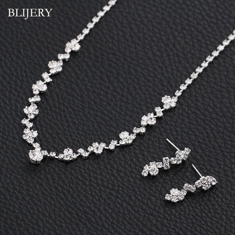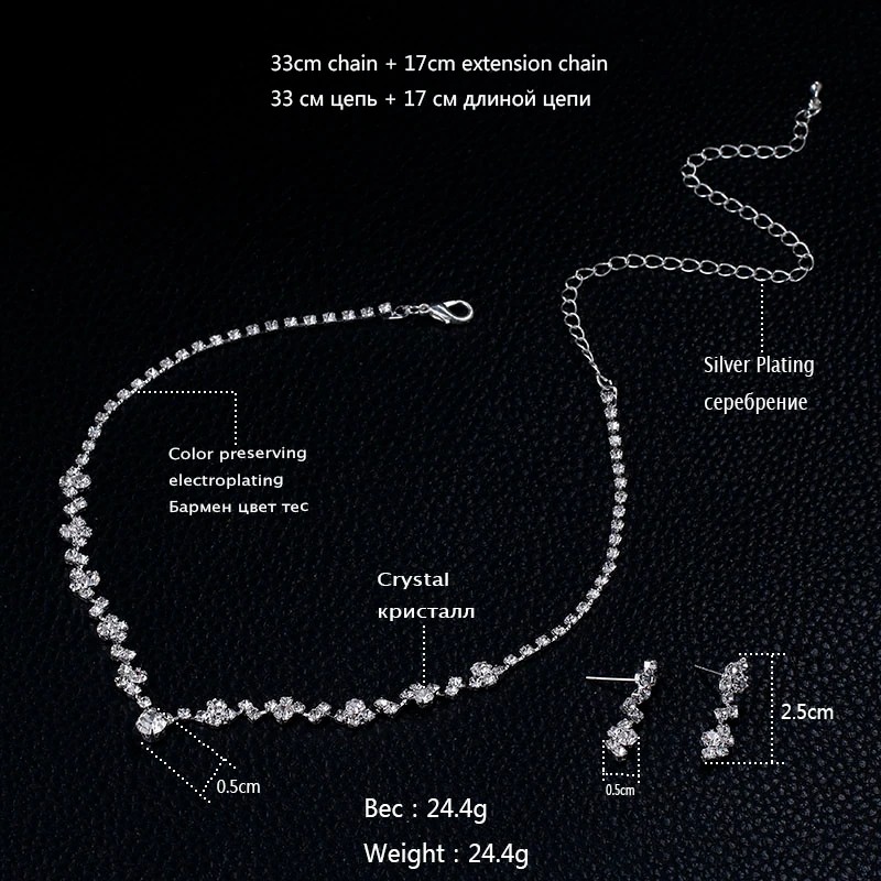 Fashion Crystal Bridal Jewelry Sets Silver Color Geometric Choker Necklace Earrings Bracelet Wedding Jewelry Sets