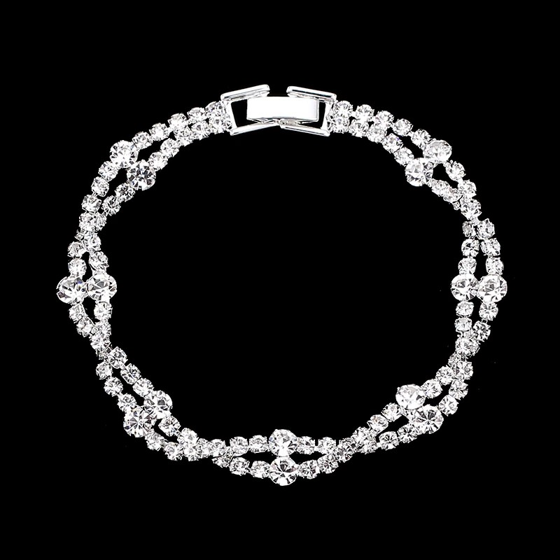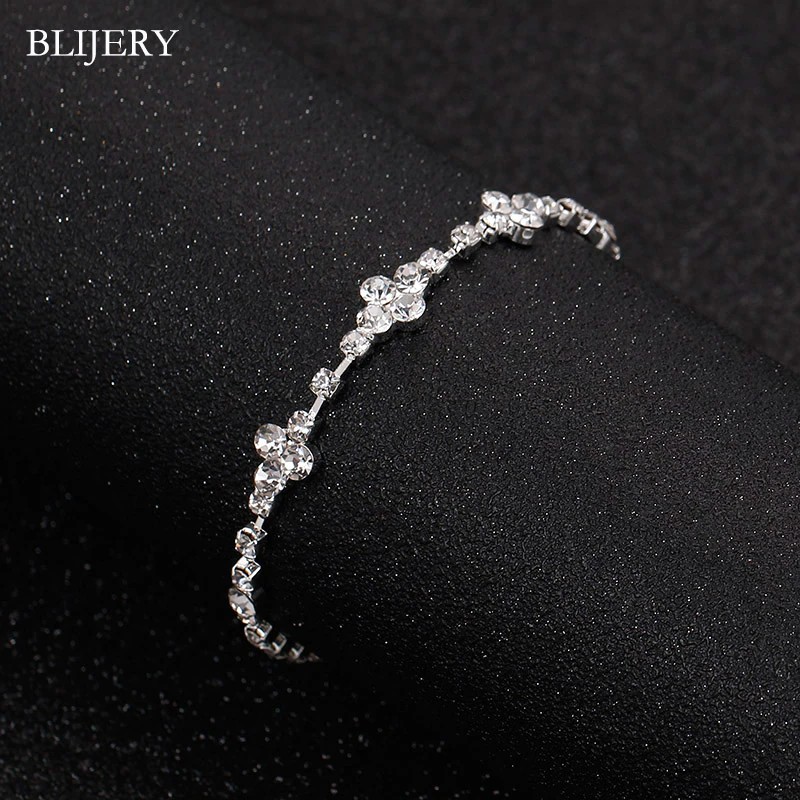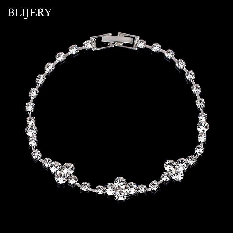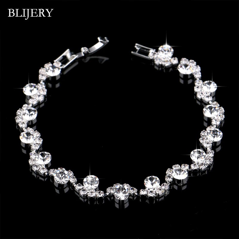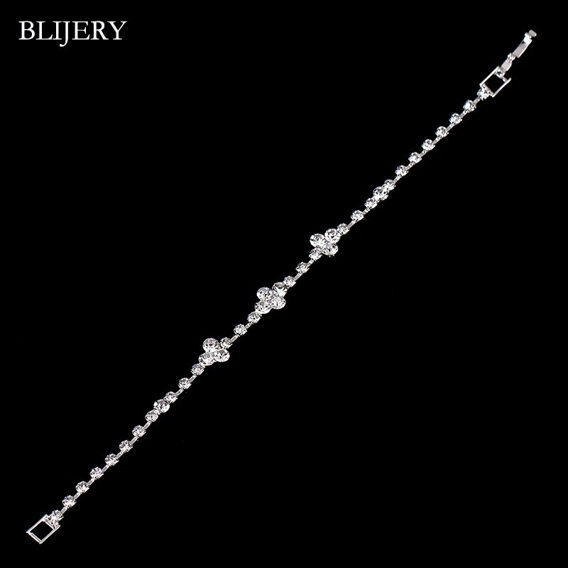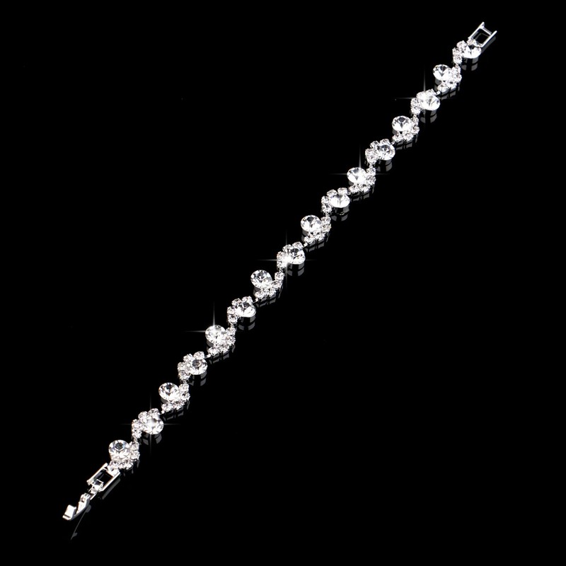 Fashion Crystal Bridal Jewelry Sets Silver Color Geometric Choker Necklace Earrings Bracelet Wedding Jewelry Sets