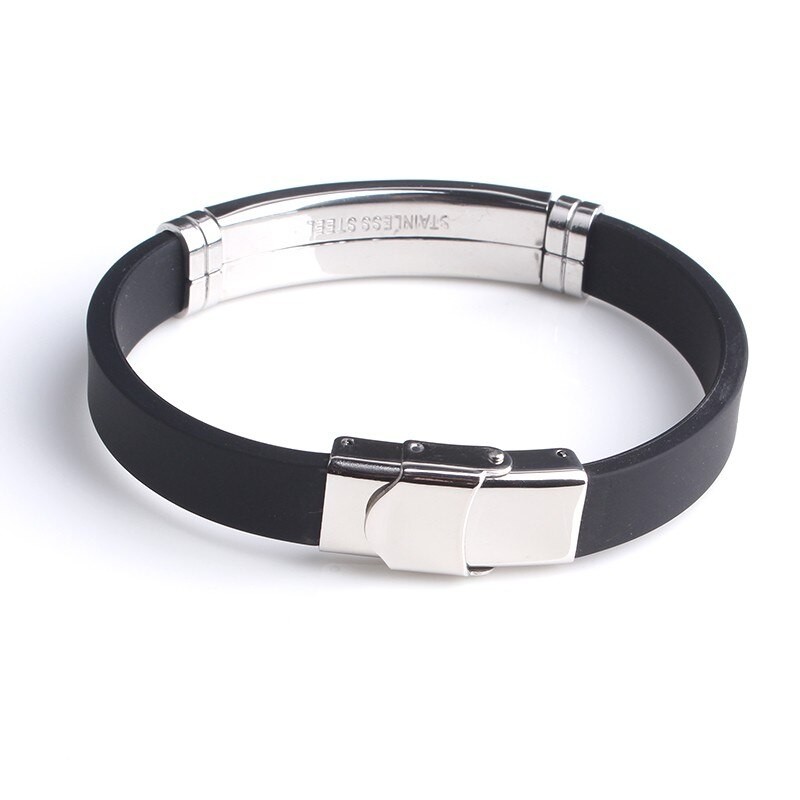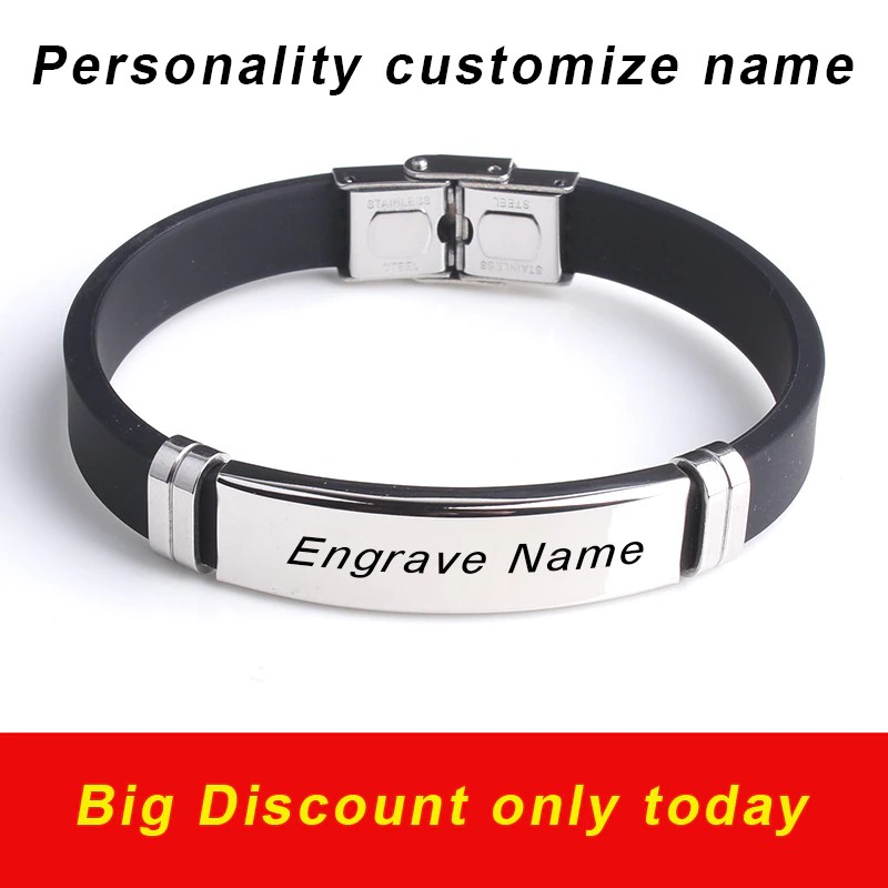 Fashion Engrave Logo Custom Name Bracelet Smooth Silicone 316L Stainless Steel Bracelets For Men Personality Jewelry