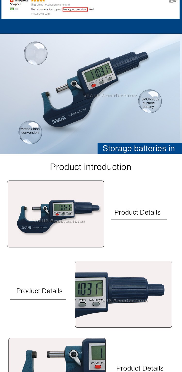 Shahe – Micromètre Externe Numérique, Jauge Électronique, Calibre 25/25Mm Calibre Outils Numériques Étrier, 0-50/50-75/100-0.001Mm