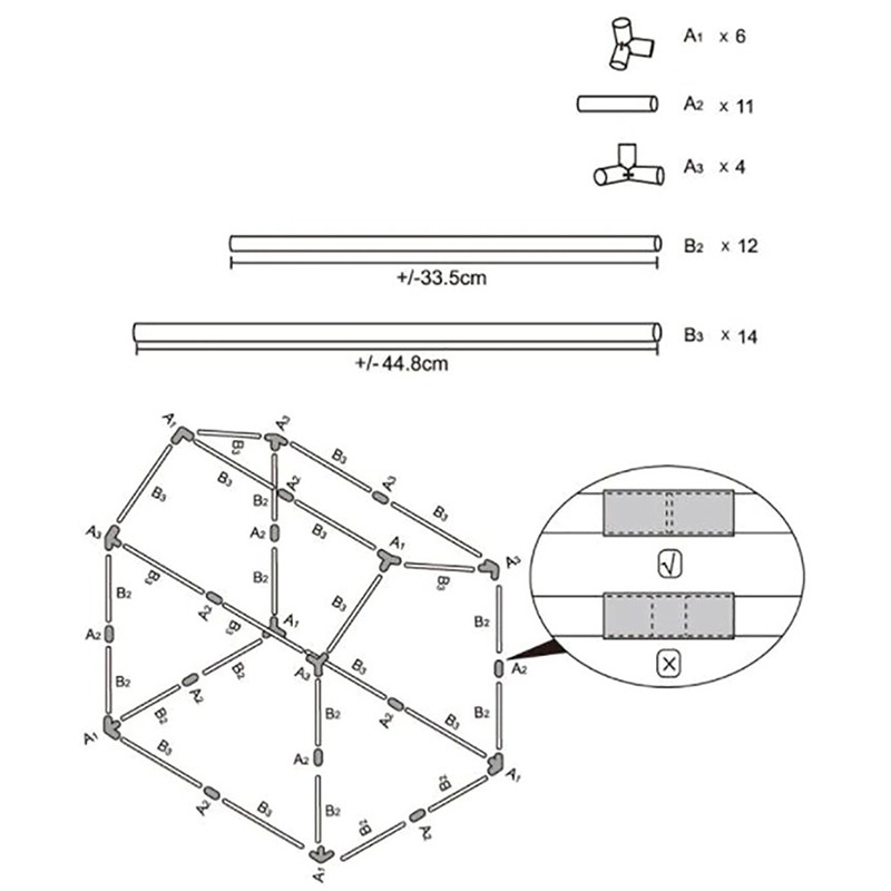 Installation:Ouvrez le packaGe et sortir deux supports de tige de fibre, trouver la position d'entrée de la tente souterraine, et traverser les deux cordes de tiges de fibre au coin opposé de la tente.