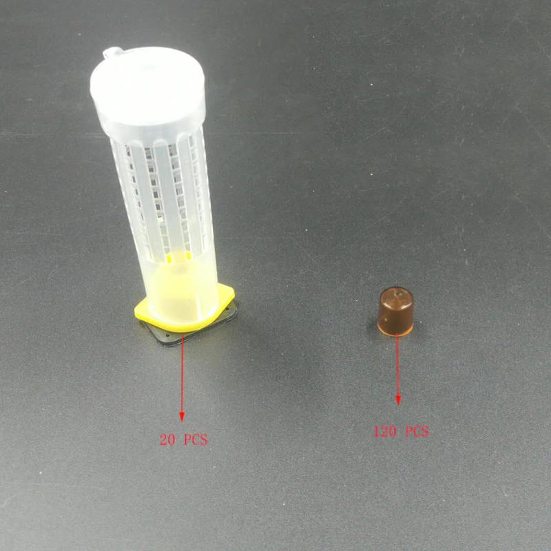 Nom: ensemble d'outils apiculteurs Matériau: nouveau plastique Taille: comme indiqué Application: apiculture Emballage: 20 pièces x Cage de reine 120 pièces x tasse de cellules brunes Caractéristiques: matériaux de haute qualité, sûrs et respectueux de l'environnement, non toxiques et sans goût. Utilisez la tranquillité d'esprit, pratique Instructions: 1. Vous insérez la boîte à peigne dans un cadre et 110 coupelles de démarreur de cellules brunes sont insérées à l'arrière. (Avec ce kit, vous pourrez élever vos propres reines et le faire sans greffer et j'adore toucher les larves.) 2. Ensuite, vous fixez la reine devant la cage et elle pose immédiatement des œufs dans les 110 cellules disponibles. Elle pourra sortir le lendemain. Le 4ème jour, chaque larve nouvellement éclosion est prête à être transportée. 3. Retirez chaque tasse de démarreur de cellule et insérez-la dans un porte-tasse de cellule (non inclus). 4. Vous glissez ensuite cet appareil sur un support de barre cellulaire qui est attaché à une barre cellulaire (non incluse). 5. Pour terminer les cellules, vous mettez maintenant la barre cellulaire dans une colonie de construction cellulaire.
