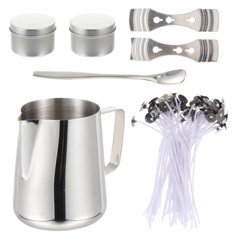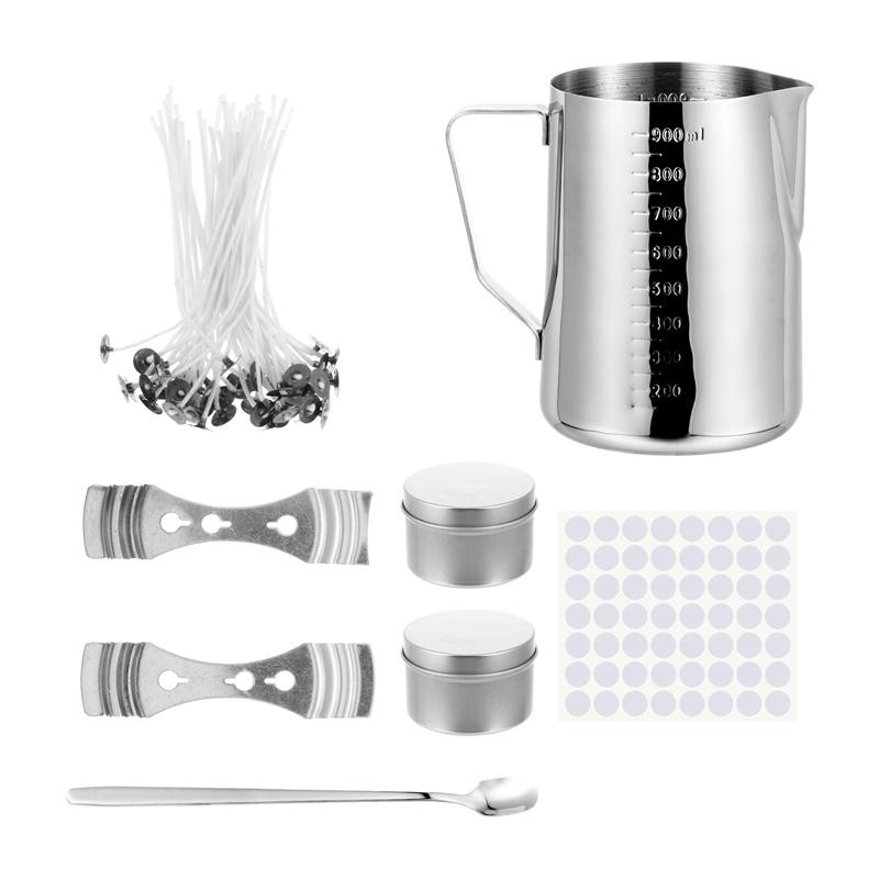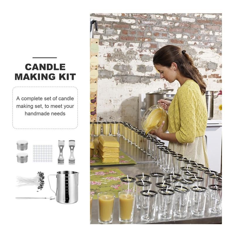 Kit De Fabrication De Bougies Pot Verseur, Mèches Autocollantes, Fixateur Ensemble Outils Artisanaux Avec Support En Coton Fait À La Main, 1 Pièce