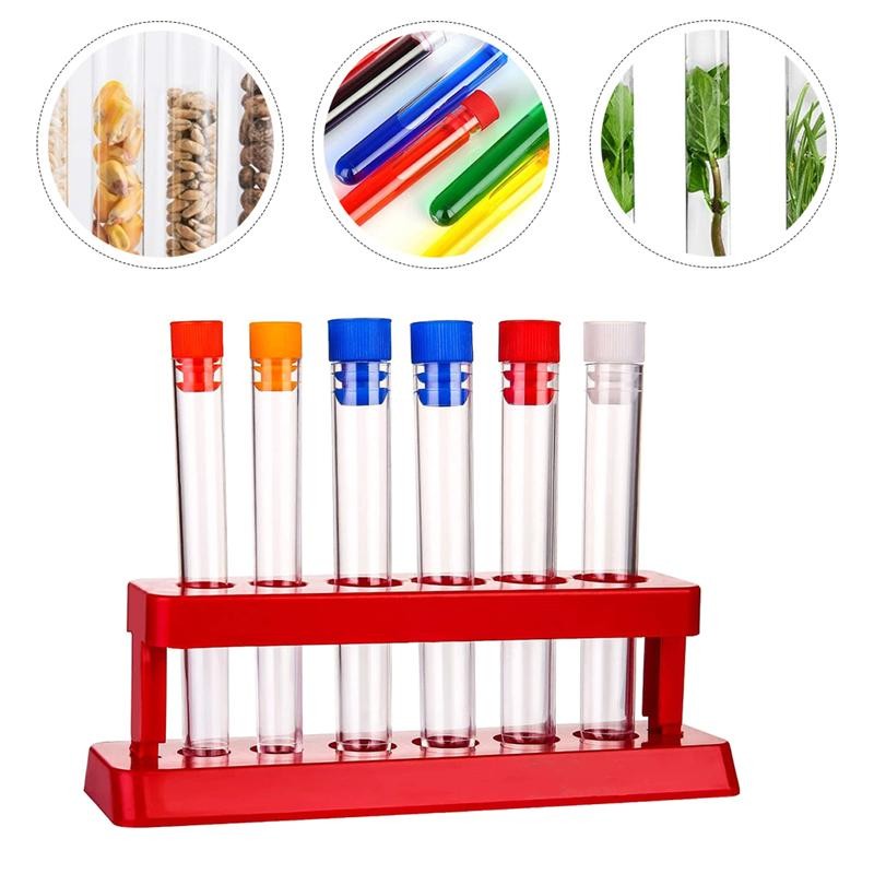 -Le support de tube à essai est portable et peu encombrant. Tubes à essai en plastique de 6 pièces pour une variété d'utilisations.