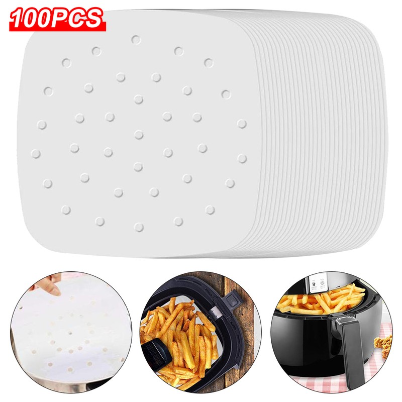 100 Pièce/Sac Friteuse À Air Vapeur Revêtements Premium Perforé Pâte De Bois Papiers Antiadhésif Panier Vapeur Tapis Ustensiles De Cuisson Pour La Cuisine Air Fryer Accesoires