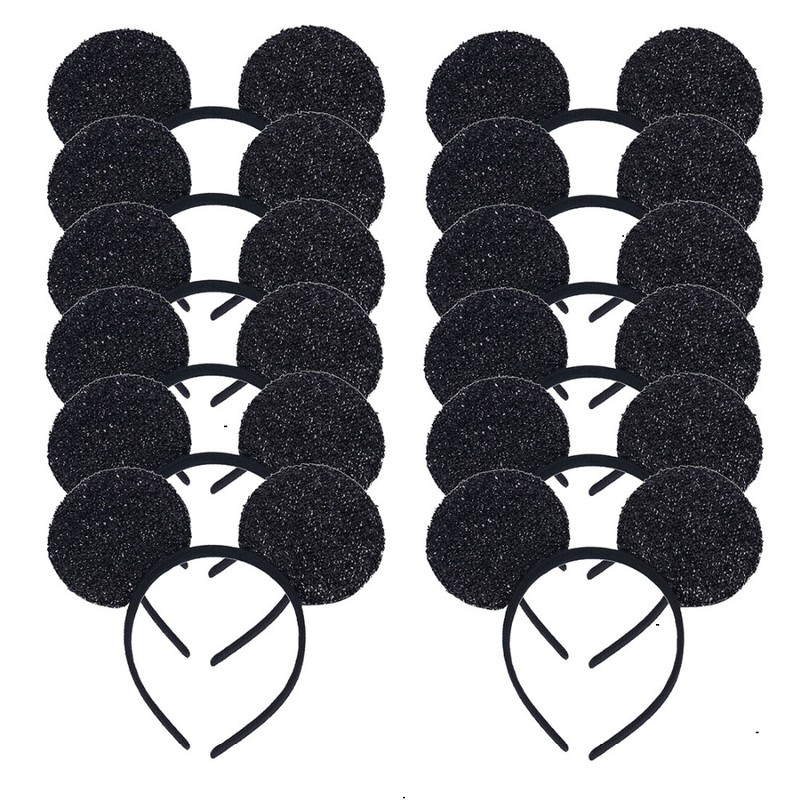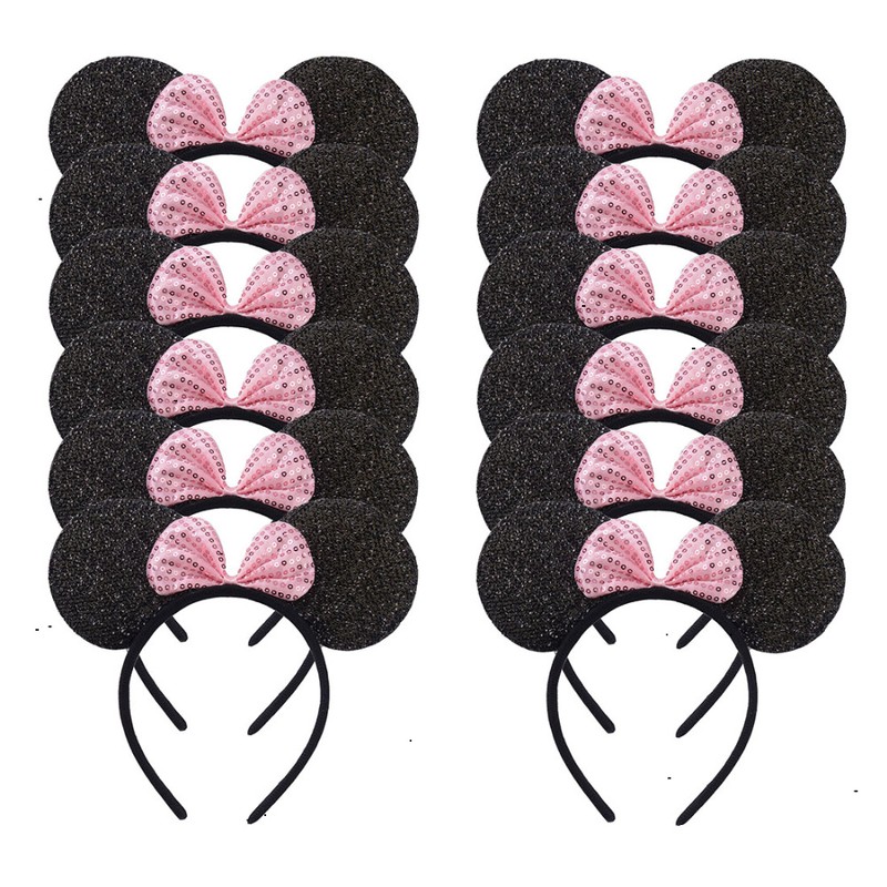 Lot De Bandeaux Oreilles De Minnie À Paillettes Noires Et Roses, Accessoire Cheveux, Idéal Comme Cadeau Pour Les Enfants Et Maman Ou Déguisement Fête D'Halloween D'Anniversaire 6 Pièces De Chaque, 12 Pièces