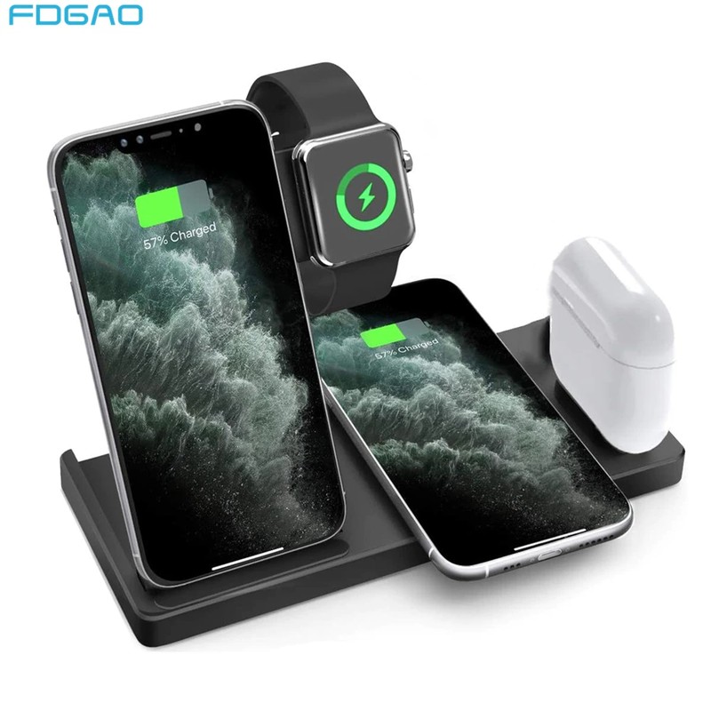 1. Ce chargeur sans fil 4-en-1 prend en charge le téléphone intelligent et convient pour apple Watch 2/3/4/5/6/SE. De plus, il pourrait charger un téléphone, une montre intelligente, un casque en même temps pour gagner du temps.