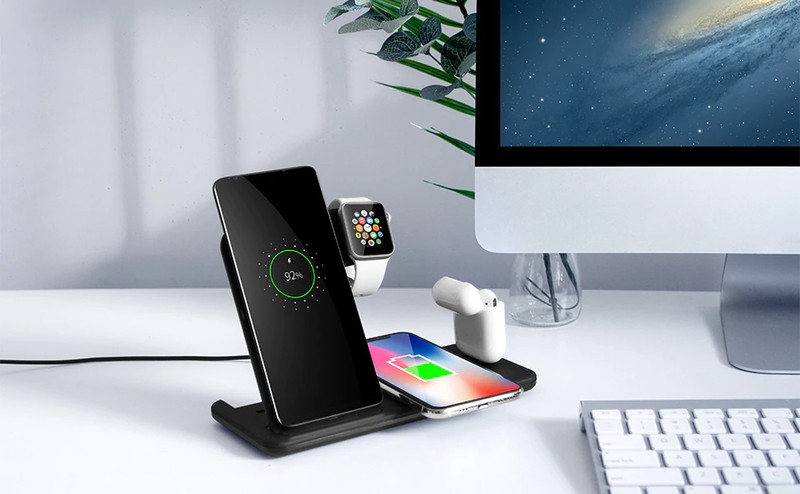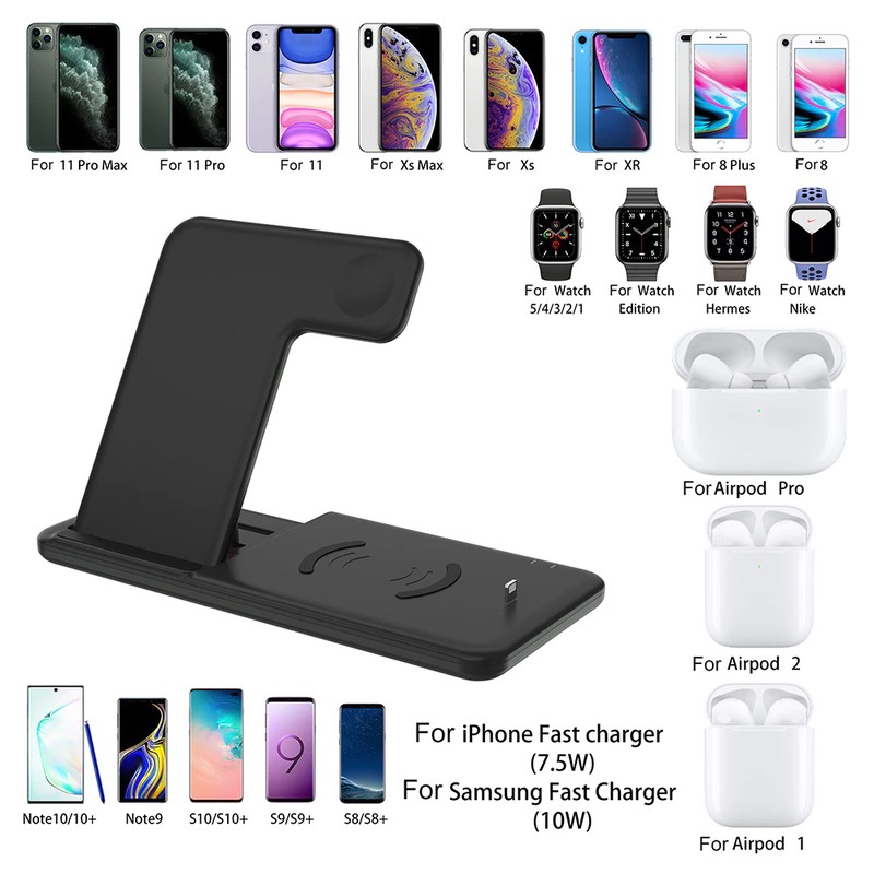 Support De Chargeur Sans Fil Rapide Qi 15 W, Pour Iphone 11, 12 X 8 Apple Watch 4 En 1 Station De Charge Pliante Airpods Pro, Iwatch