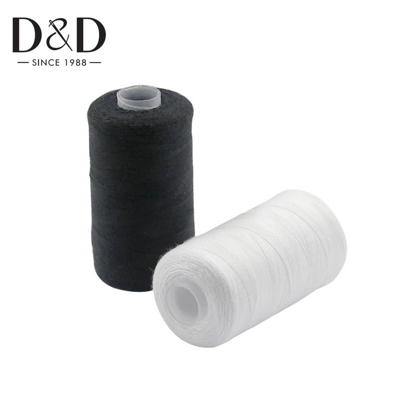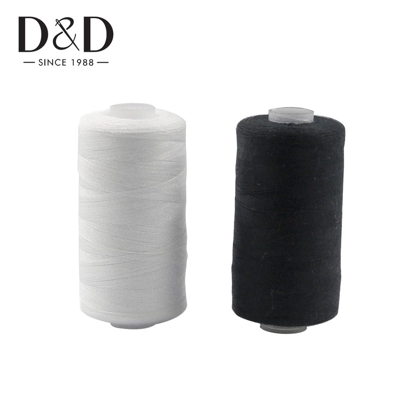 Ensemble de fils à coudre en Polyester de 500M, 2 pièces de fils à coudre solides et durables en noir et blanc pour Machines à main
