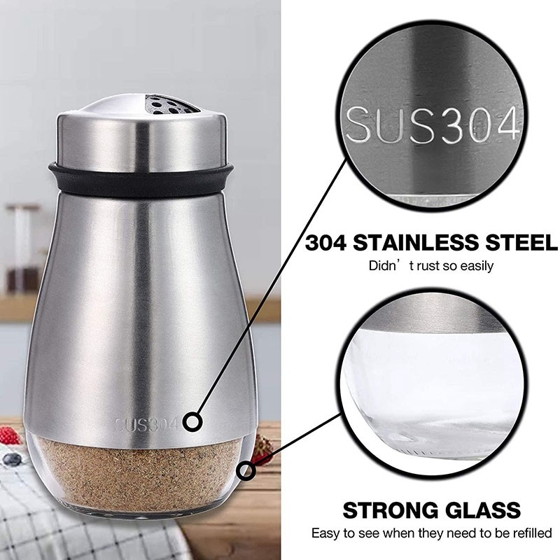 The salt and pepper shakers has 3 adjustable settings. Small, Medium, Large Holes perfect for different seasoning or spice - (himalayan, kosher and sea salts, black pepper, sugar, chilli peppers, chipolte pepper flakes, or any other spices).
