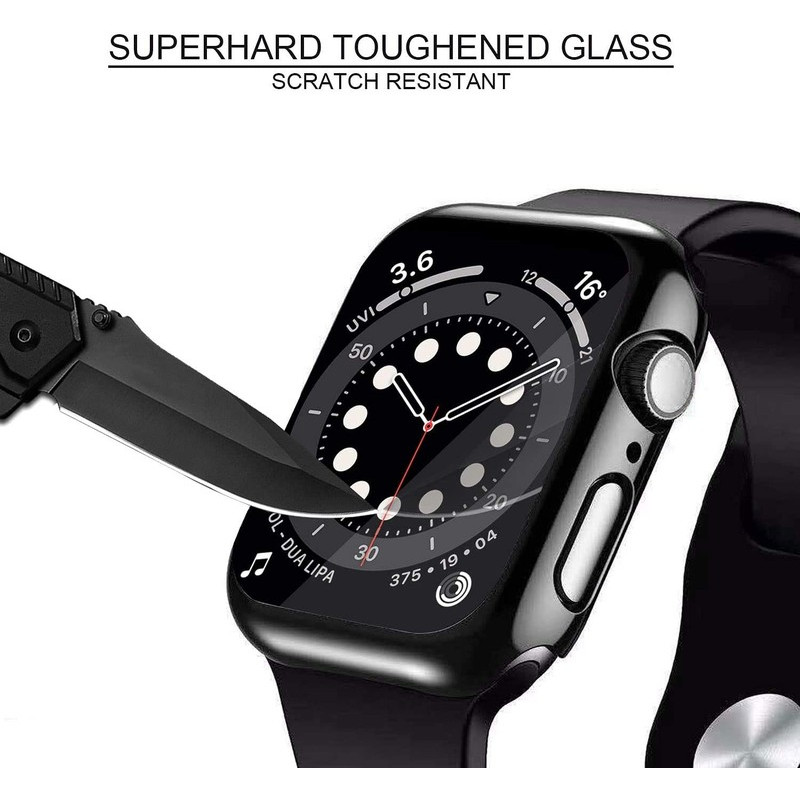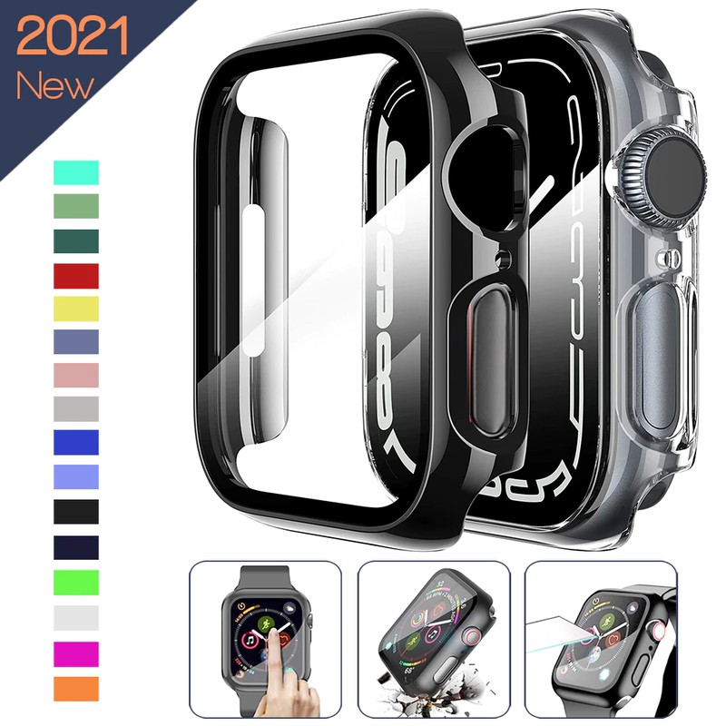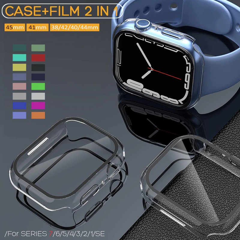 Cadre Rigide Mat 360 Pour Apple Watch 7/6/Se/5/4/3/2/1, Couvercle En Verre Trempé Pour Iwatch 41Mm 45Mm 40Mm 44Mm