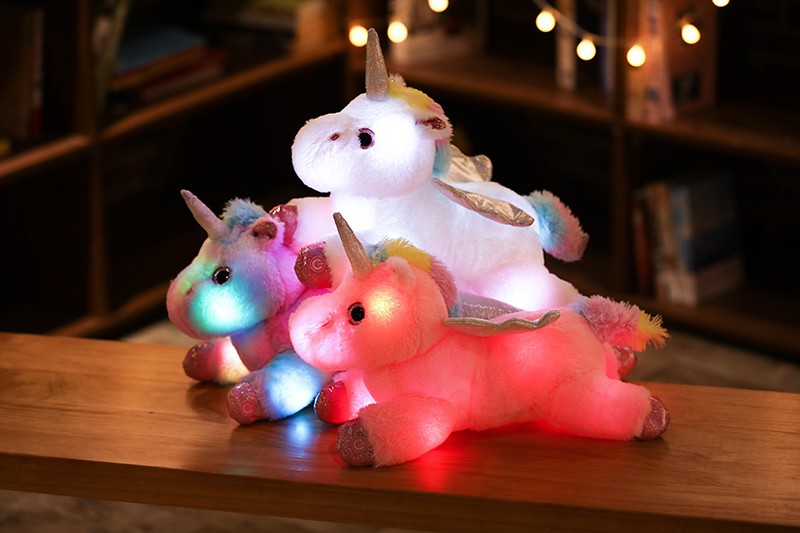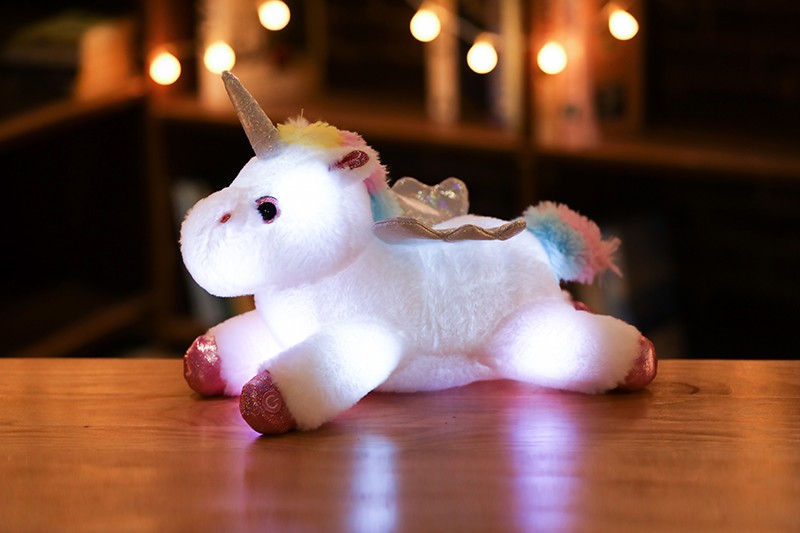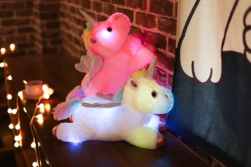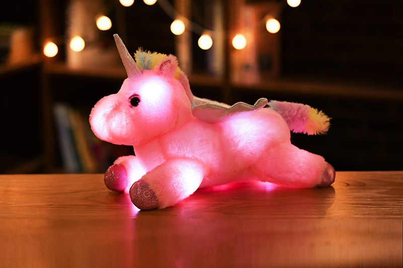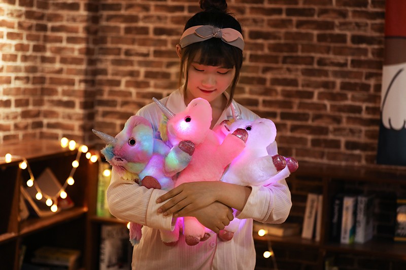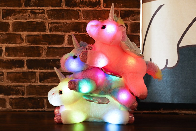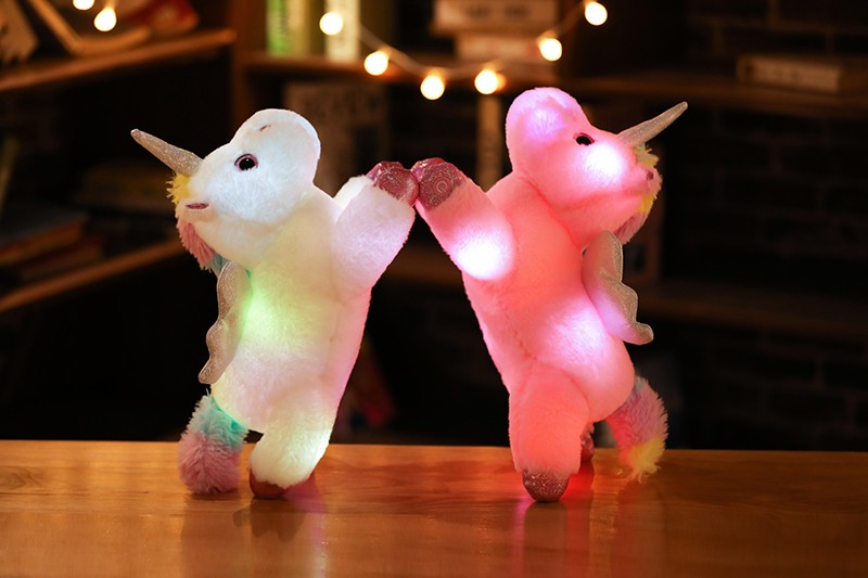 Peluche licorne LED colorée de 38cm, animaux en peluche lumineux rose licorne cheval jouet mignon poupée lumineuse enfants filles cadeaux de noël