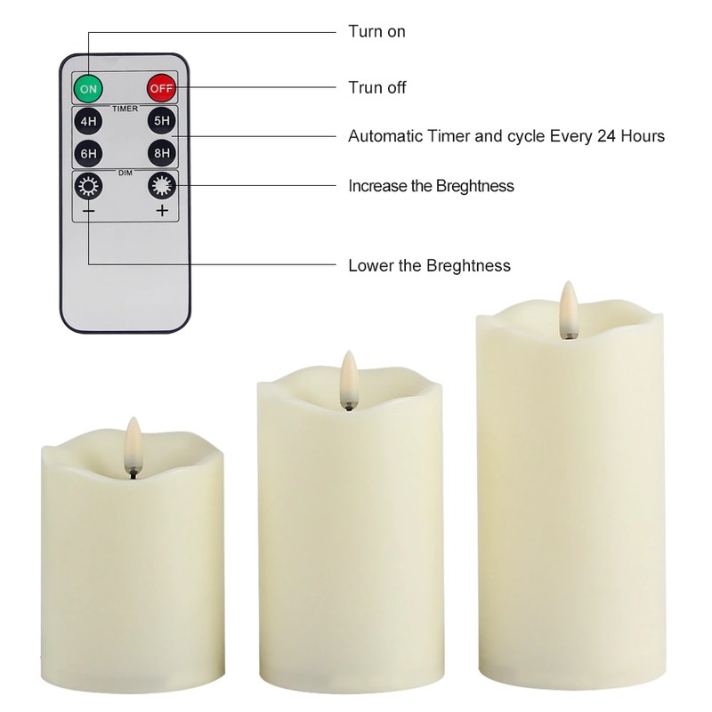 Ensemble de 3 bougies sans flamme à LED télécommandées, bougies de nouvel an à piles, bougies de pâques avec emballage