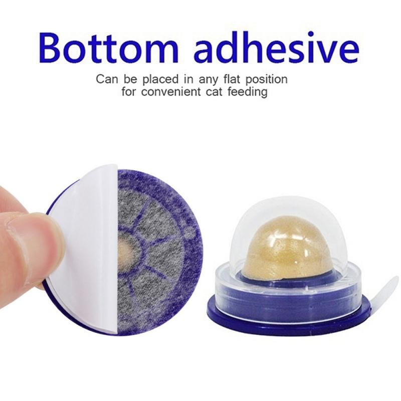 Il y a du ruban adhésif derrière la base du bonbon, qui peut être fixé sur les pieds de table, les pieds de chaise, le sol, etc., pour faciliter le léchage du chat.