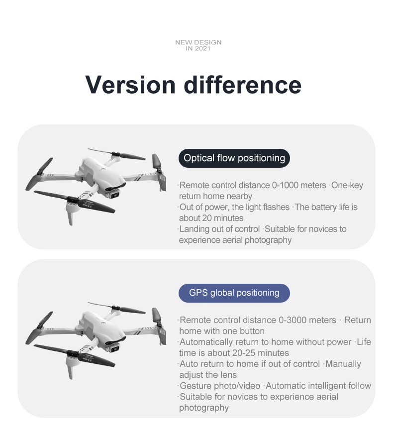 Le lien a une version non GPS et une version GPS. Veuillez vérifier attentivement la description et les photos du SKU. Nous ne serons pas responsables de tout litige ultérieur. À propos de la page de détails est sur l'introduction générale des fonctions de la version GPS, sur les fonctions de la version non GPS, il n'y a pas de suivez-moi, vol autour, vol Waypoint. La télécommande montrée sur l'image est la version GPS, et la télécommande de la version non GPS est différente de la photo.
