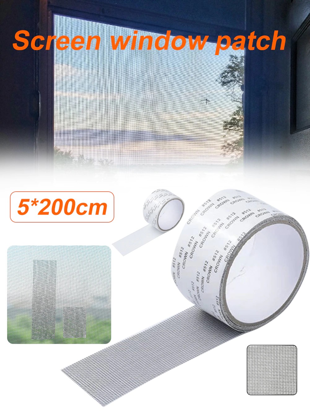 Bande Adhésive Pour Réparation D'Écran, 5X200Cm, Patch De Porte Fenêtre Auto-Adhésif Super Fix Moustiquaire Anti-Insectes Maille Trous Cassés Réparation, Nouveau