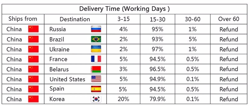 7. En raison de l'état des stocks et du décalage horaire, nous choisirons d'expédier votre article depuis notre premier entrepôt disponible pour une livraison rapide.