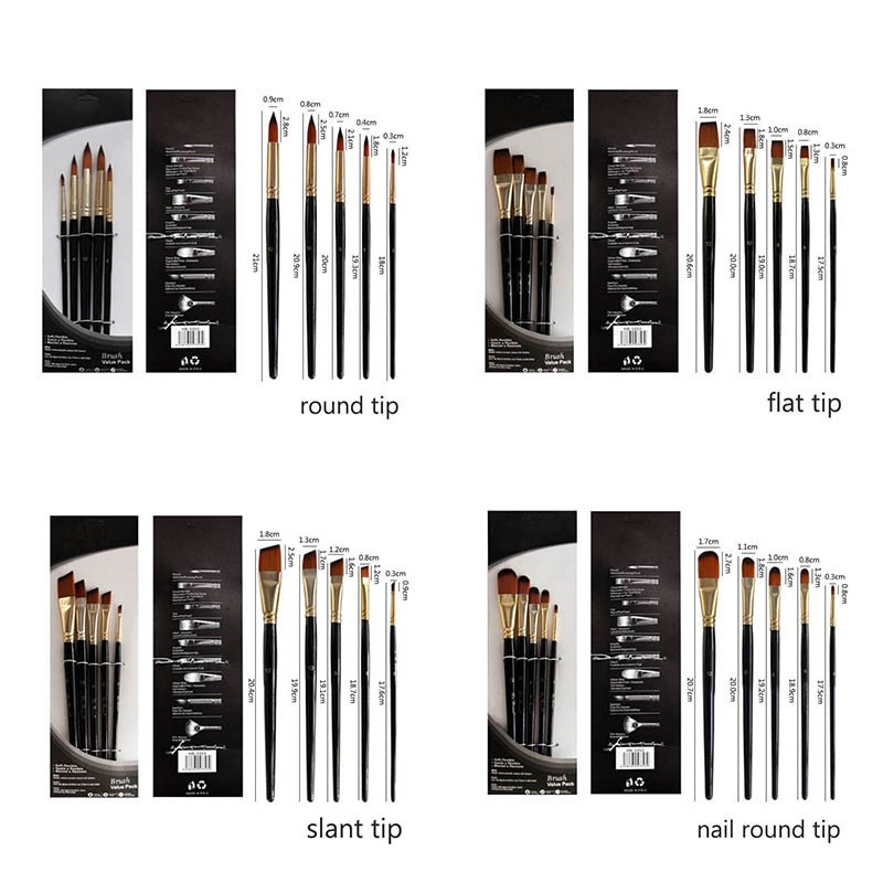 Ensemble De Pinceaux À Peinture D'Artiste, Poils En Nylon De Haute Qualité, Manche En Bois Noir Brosse À Huile Acrylique Aquarelle Fournitures D'Art, 5/6 Pièces