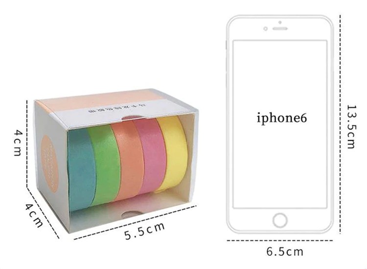 Ensemble De Scotch Washi Décoratif De Scrapbooking, Ruban Adhésif Solide, Mignon Bande Fournitures De Papeterie Scolaire, 5 Rouleaux/Boîte