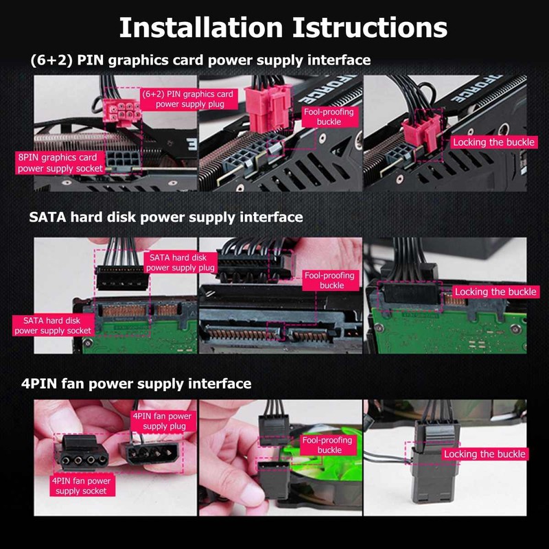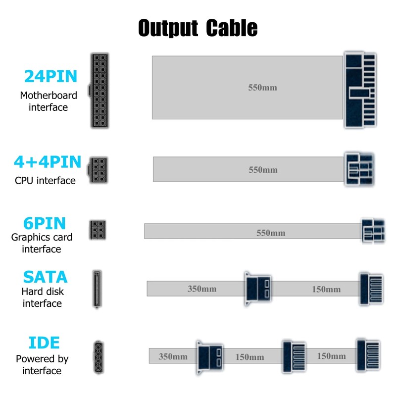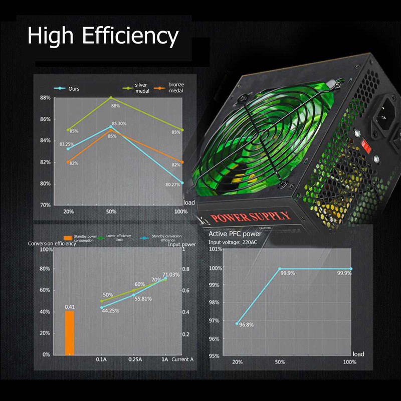 Alimentation 800W 120mm ventilateur LED 24 broches PCI SATA ATX 12V alimentation de l'ordinateur Caractéristiques: ★P eak power 800W,Convient à la configuration d'ordinateur haut de gamme sur le marché. ★Conforme à la conception d'intel,Supporte Intel, gamme complète de plateforme double cœur AMD, supporte VISTA, système d'exploitation win7. ★En utilisant un ventilateur LED à roulement hydraulique de 12cm,Ventilateur silencieux efficace et économe en énergie, puissance de veille 1W. ★Conception intelligente du circuit de contrôle de la température,Ajuster automatiquement la vitesse du ventilateur et prolonger la durée de vie. ★Utilisant une grande capacité et une grande capacité,Supporter une utilisation large largeur (110 ~ 220V), commutation manuelle de la tension. ★Conception de circuit de protection multifonctionnel,Avec surtension, surintensité, surcharge, sous-tension, court-circuit, protection contre la lumière et autres fonctions de protection. Spécifications: Matériau: coque en alliage d'aluminium + câble en cuivre Couleur: Noir Taille du produit: 15x14x8, 5cm/5.9 "x 5.5" x 3.3" Diamètre du ventilateur: 12cm/4.7" Longueur du câble: environ 140cm/55.1" Longueur de la ligne de sortie: environ 50cm/19.7." Alimentation standard: ATX 12V Interface: 1x24P + 1x8P + 1x6 + 2P + 1x(1*4P + 2 * SATA)+ 1x(1*4P + 1 * SATA) Tension d'entrée: 110 ~ 220V (tension de commutation manuelle) Tension de sortie: 12V 220a Puissance P eak: 800W Efficacité: ≥ 80% Convient pour: ordinateur de bureau Emballage Inclus: 1 x Alimentation 1 x câble (prise ue) Note: 1. Veuillez permettre des différences de 0.5 à 1cm en raison de la mesure manuelle. 2. En raison de la différence de lumière et d'écran, la couleur de l'article peut être légèrement différente des images. |