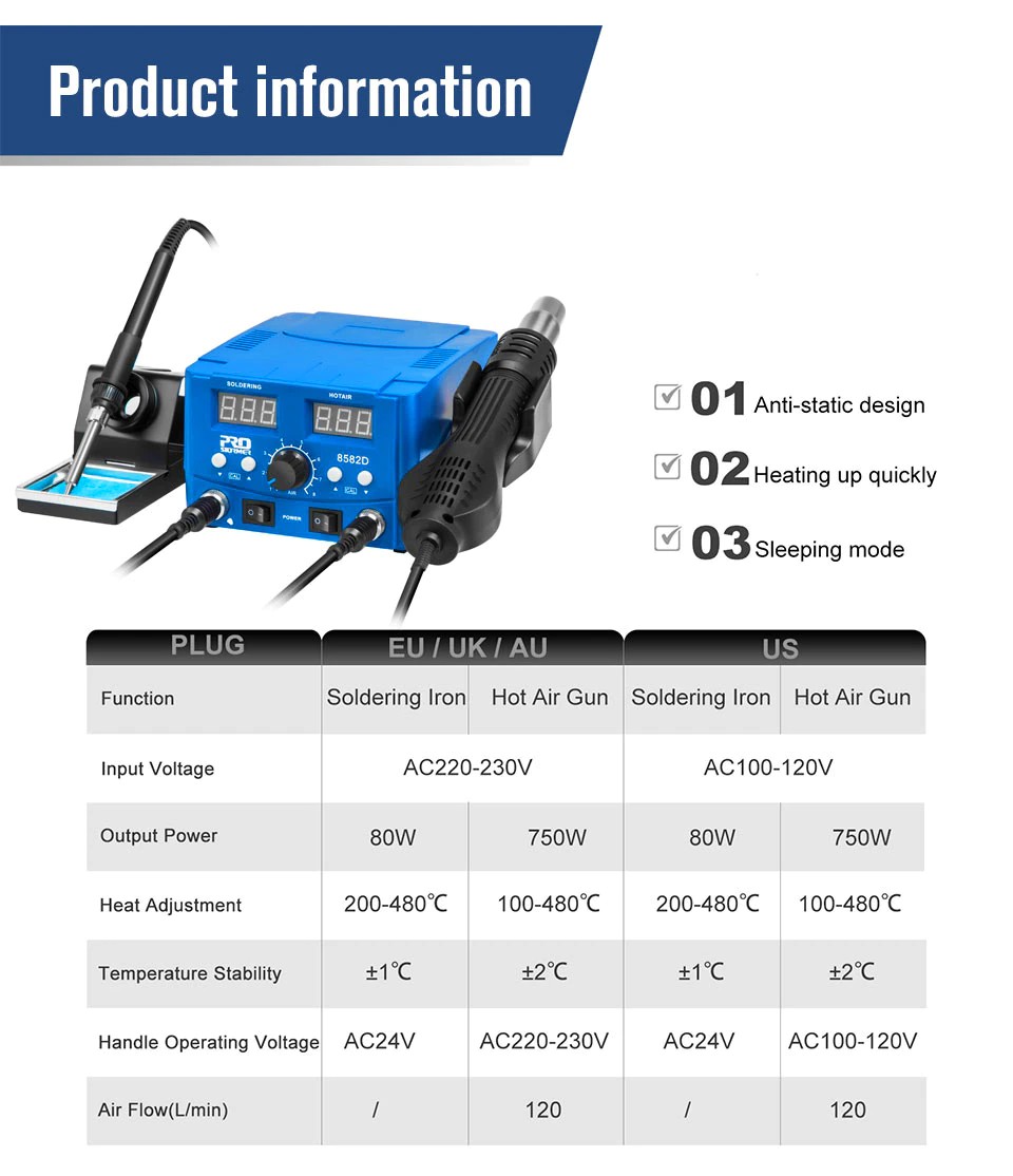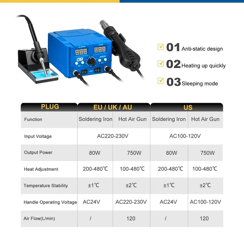 800W Smd Poste De Soudure Pistolet À Air Chaud Électrique À Chaleur Rapide Affichage Led 2 En 1 Soudure Air Chaud Fer À Souder Électrique Bga Poste De Soudage De Reprise Par Prostomer
