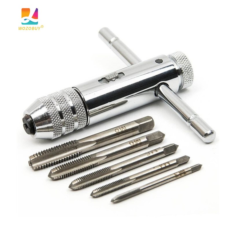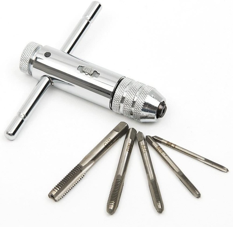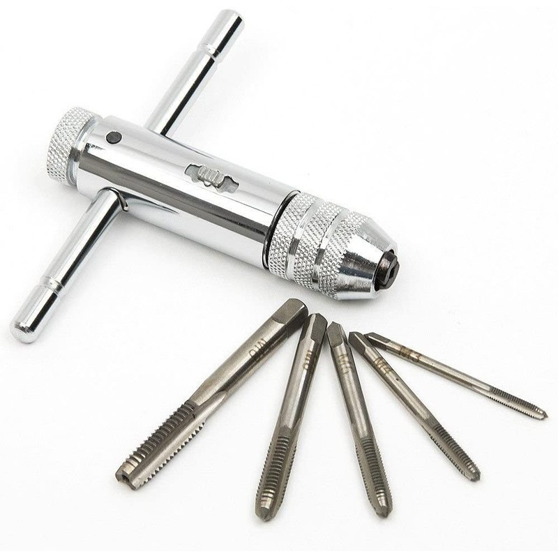 Clé Porte-Robinet À Cliquet À Poignée En T, Argent Réglable Avec 5 Pièces M3-M8 Filetage De Vis De Machine 3Mm-8Mm Bouchon Métrique Robinet En Forme De T