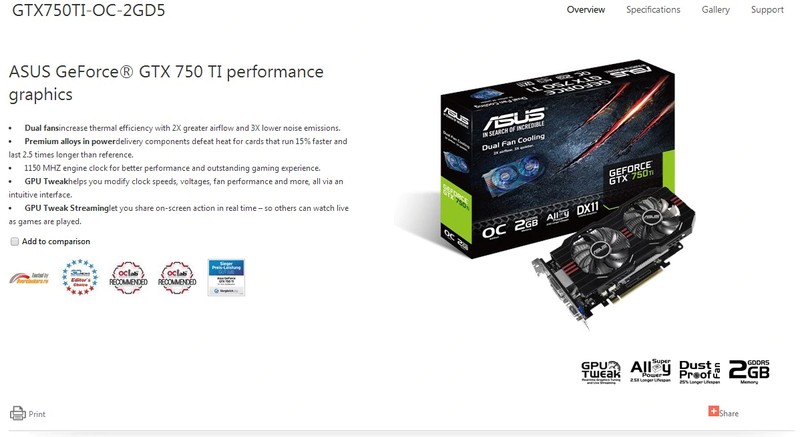 ASUS – carte graphique vidéo GTX 750Ti-OC 2GD5