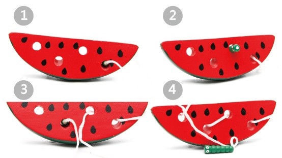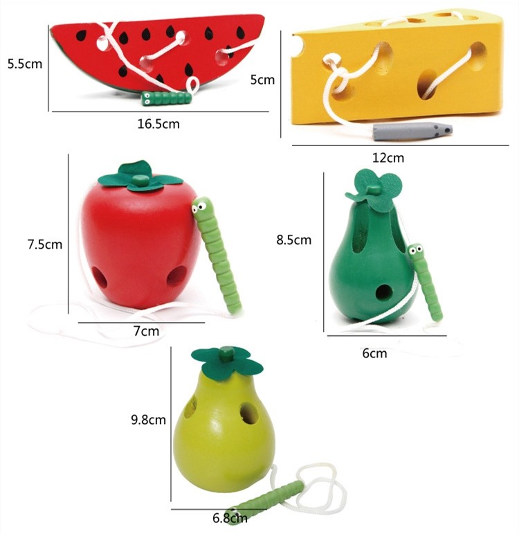 Jouets en bois Montessori: Fil de perles de cercles en bois