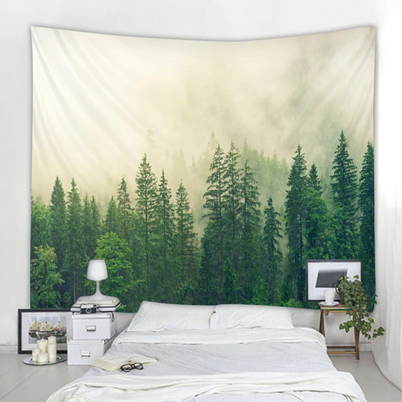 Grande Tenture Murale Imprimée Forêt, Belle Tapisserie De La Nature, Suspension Hippie Bohème Mandala, Décoration Artistique