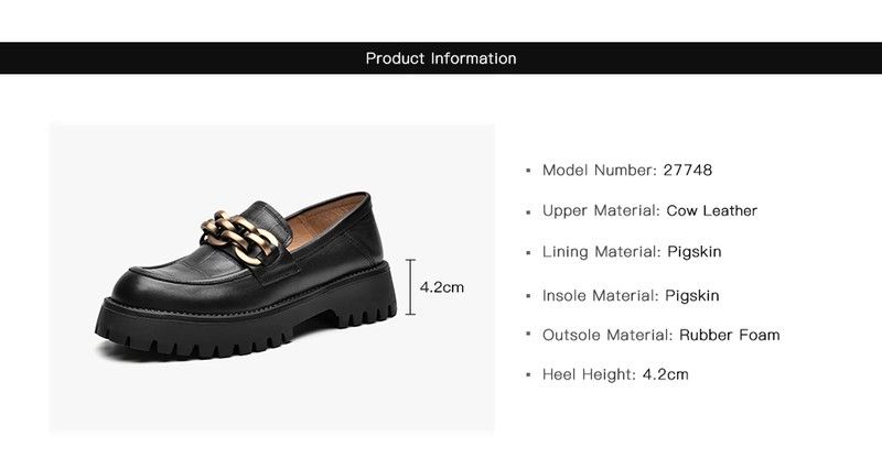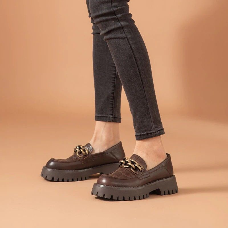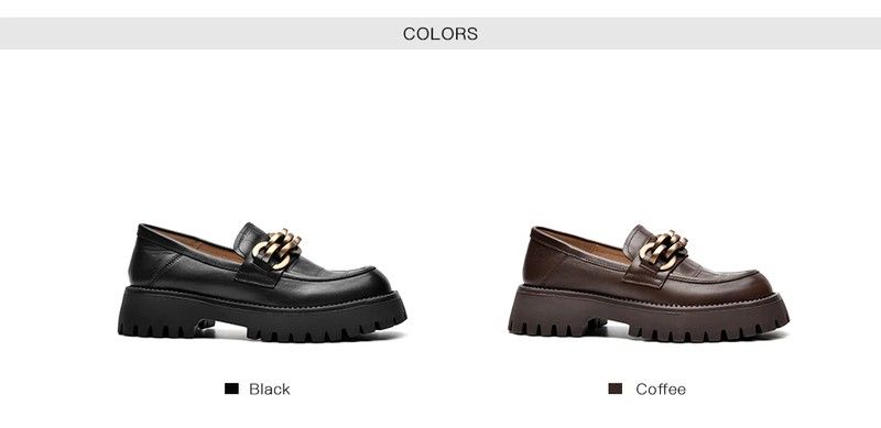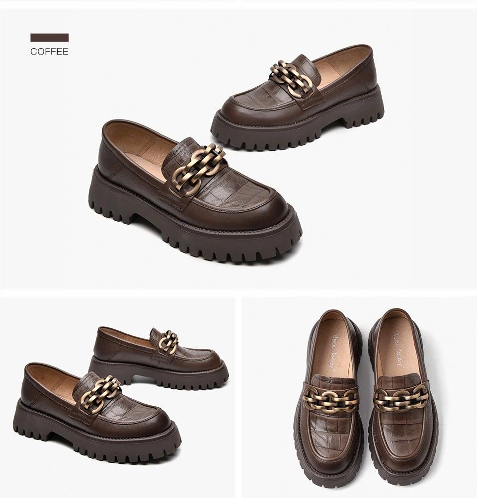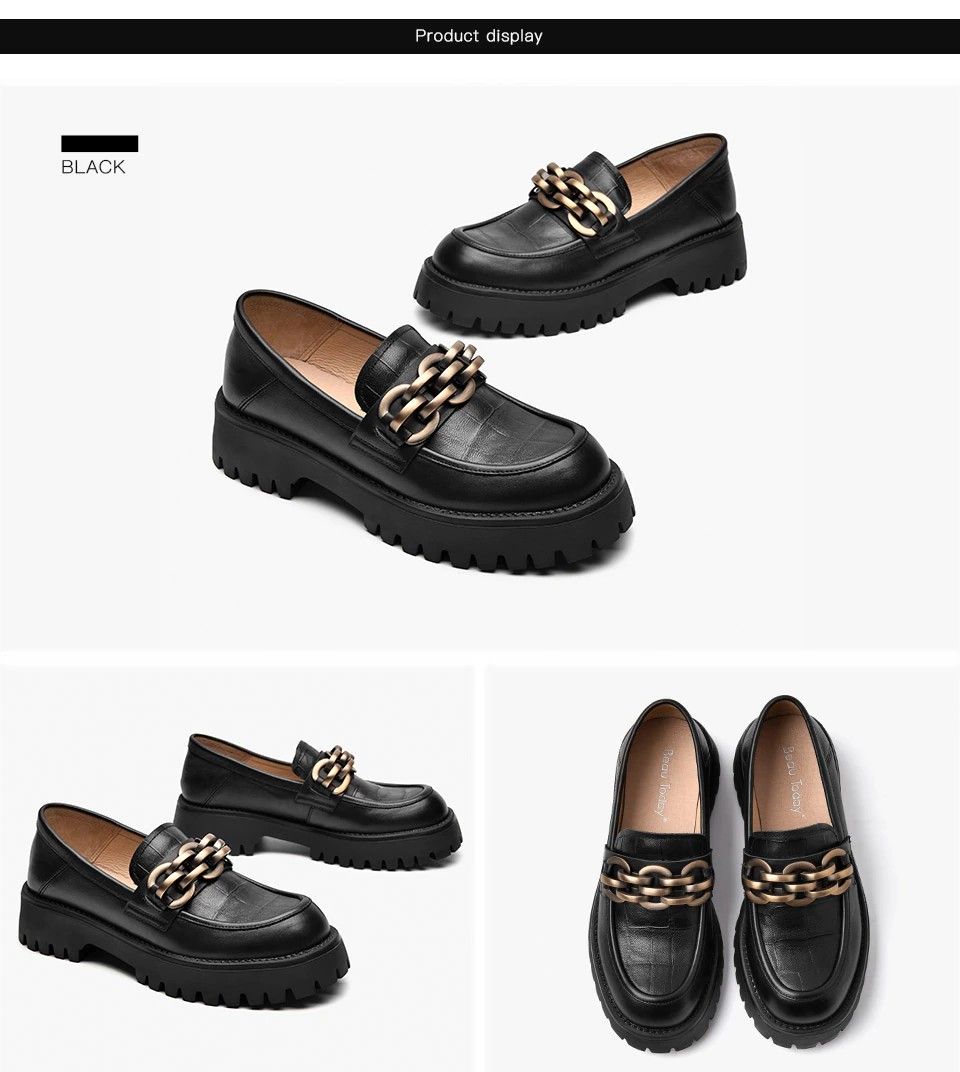 Beautoday – Mocassins Épais En Cuir De Vache Véritable Pour Femmes, Chaussures À Plateforme, Bout Rond Chaîne En Métal Faites À La Principale, 27748