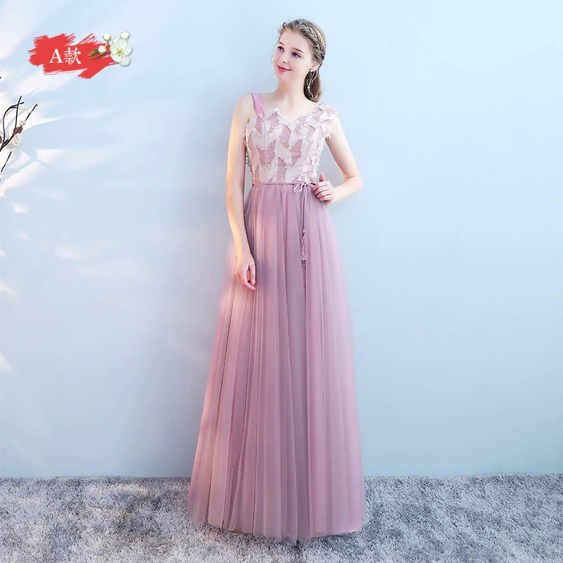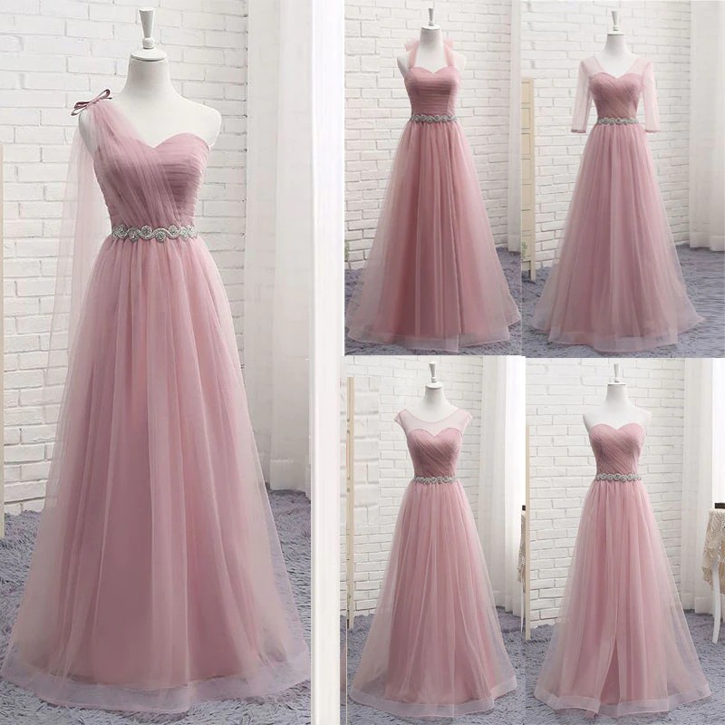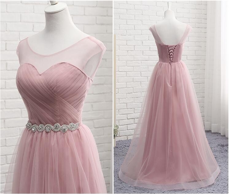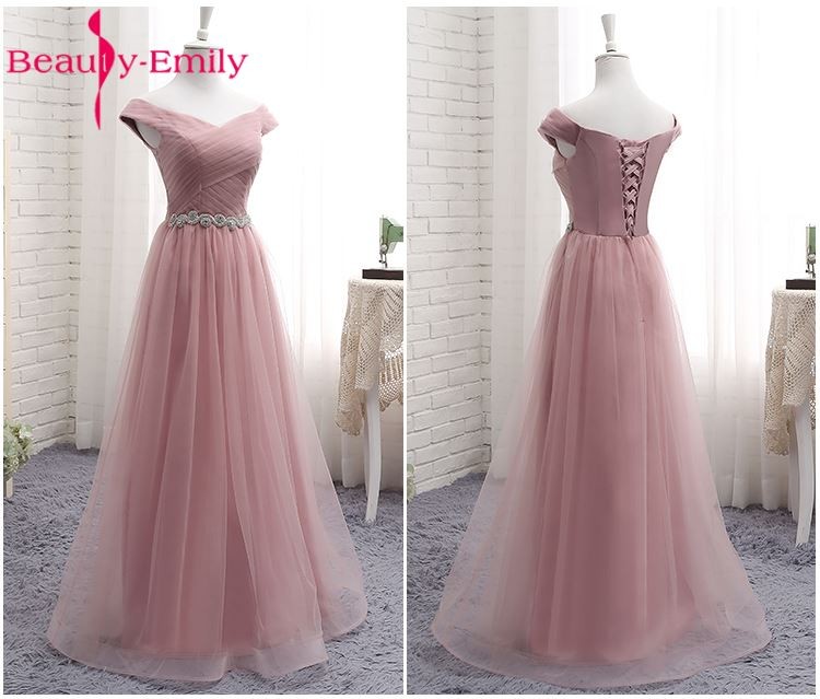 Beauty – Robes De Demoiselle D'Honneur À Col En V, Longues Pour Mariage, Élégantes Robes De Soirée En Tulle Rose Pour Invités Mariage, Robe De Bal