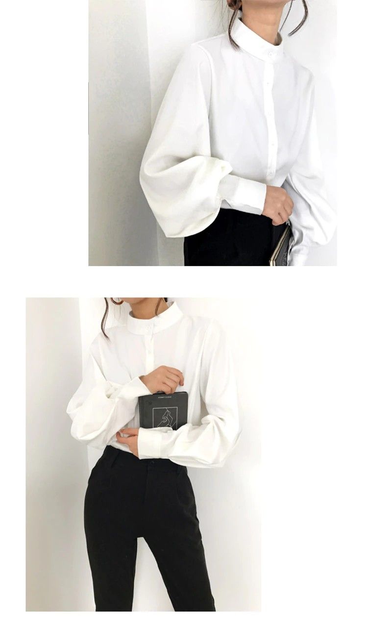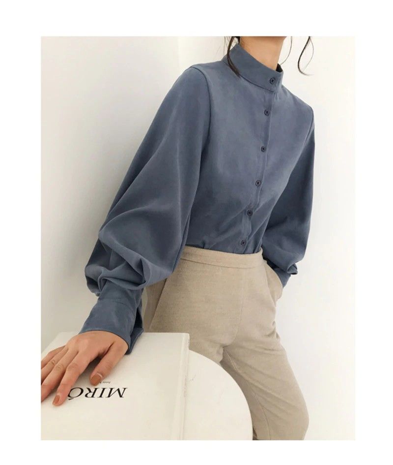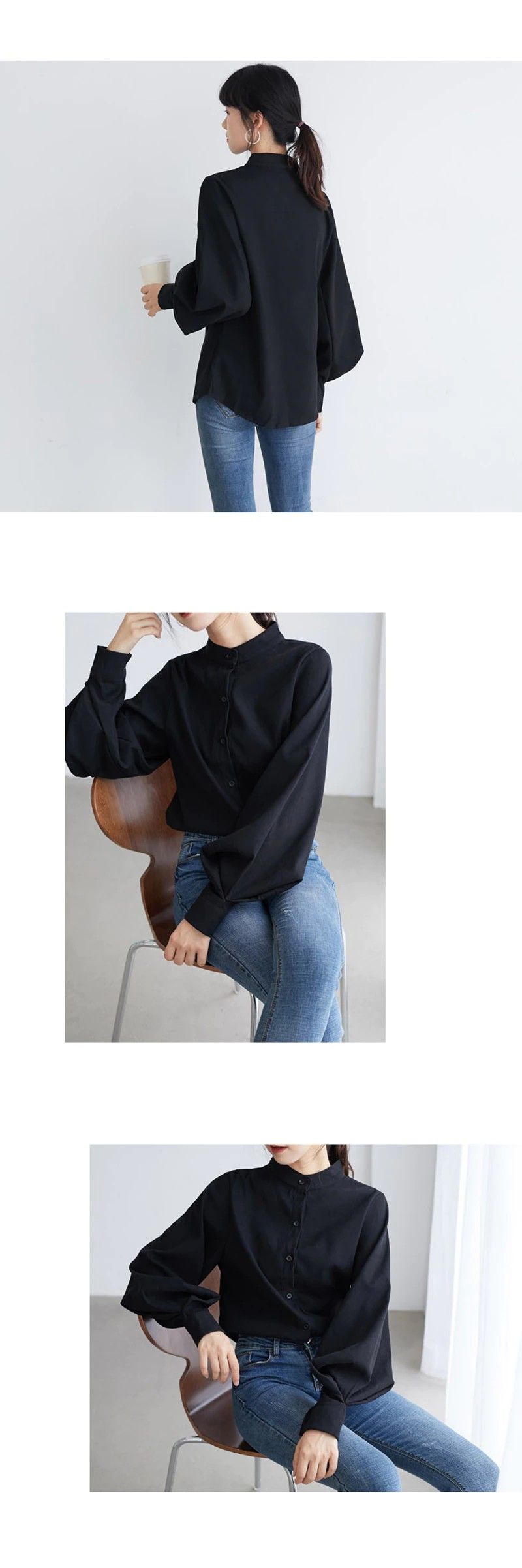 Chemisier Vintage Pour Femmes, Grande Blouse À Manches Longues Lanternes, Modèle Automne Hiver Coloris Unis Col Chemise, Idéal Pour Aller Au Travail