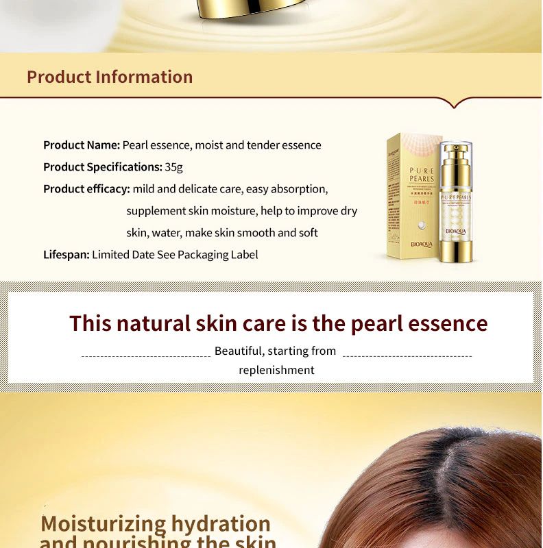 BIOAQUA – sérum au collagène et à l'acide hyaluronique Pure Pearl, crème Essence Anti-âge hydratante pour le visage