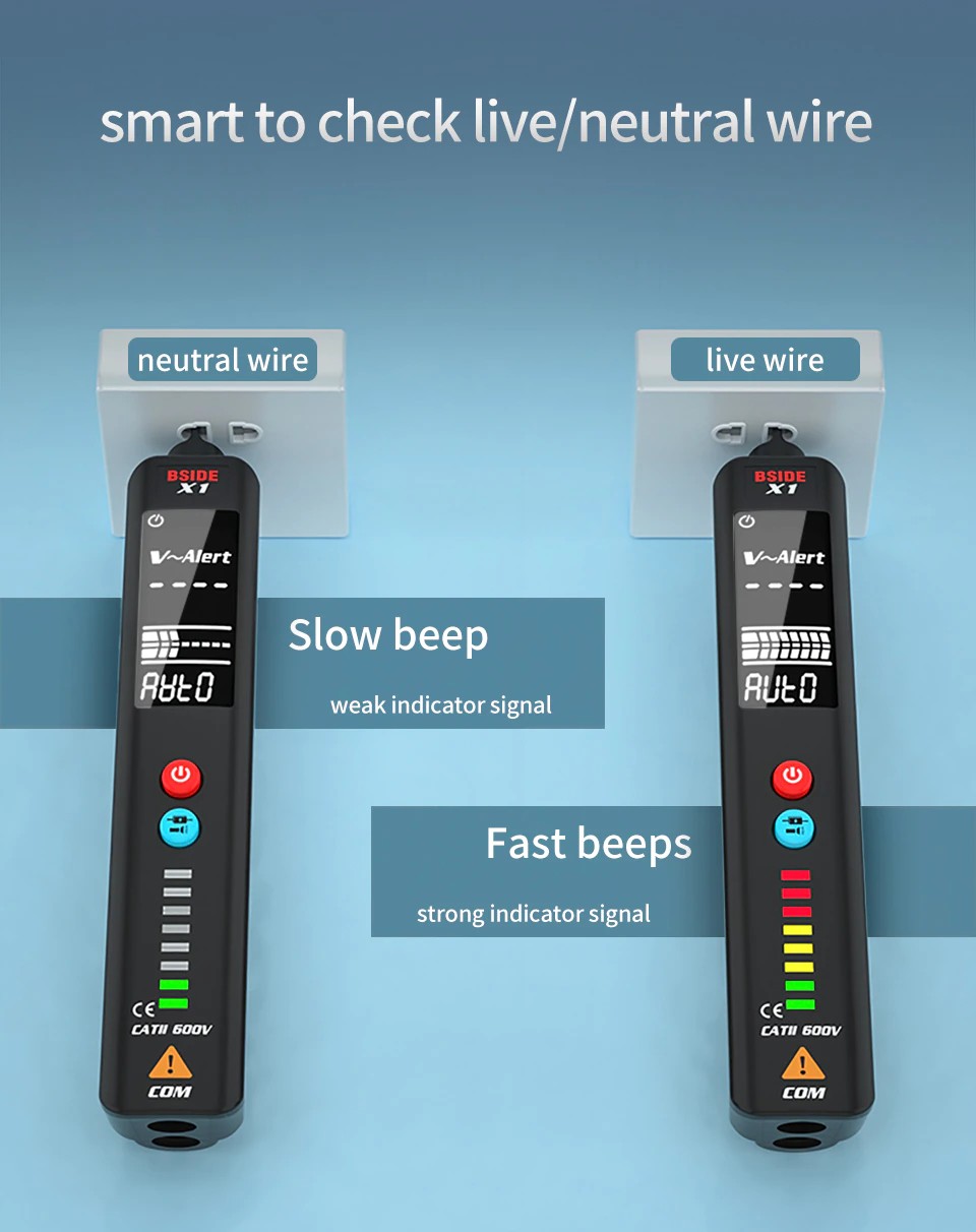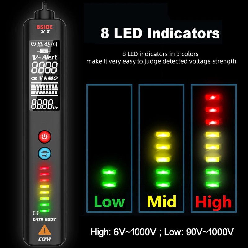 Bside – Testeur De Détecteur De Tension X1 X2, Multimètre Intelligent, Thermomètre Infrarouge Sans Contact Affichage Ebtn Fil En Direct, Crayon De Test Ncv