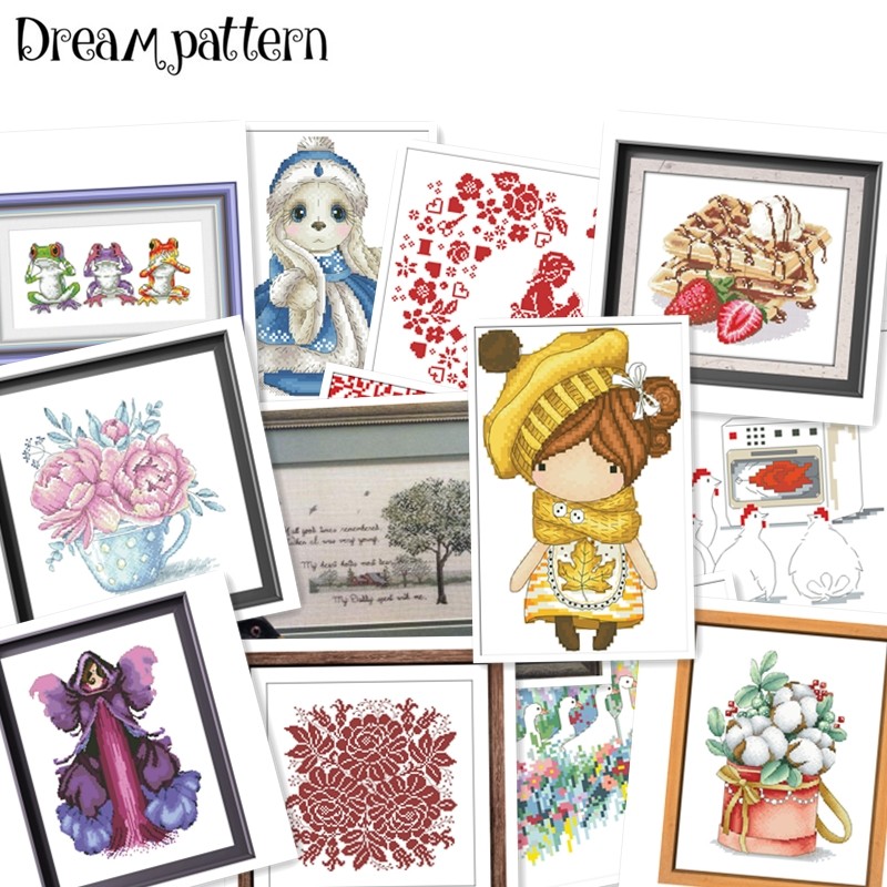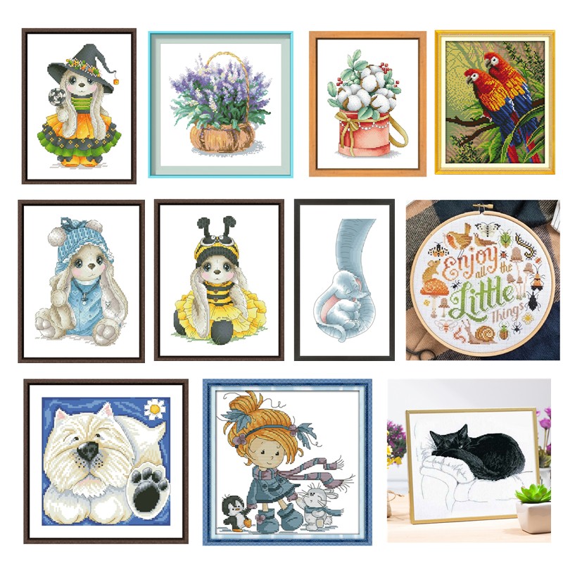 Paquet De Points De Croix Dessin Animé Féerique, Rose 18Ct 14Ct 11Ct, Tissu Blanc Coton Et Fil De Soie, Broderie À Faire Soi-Même