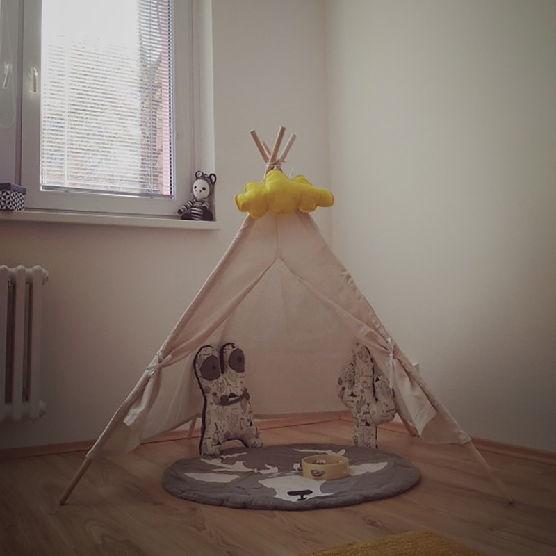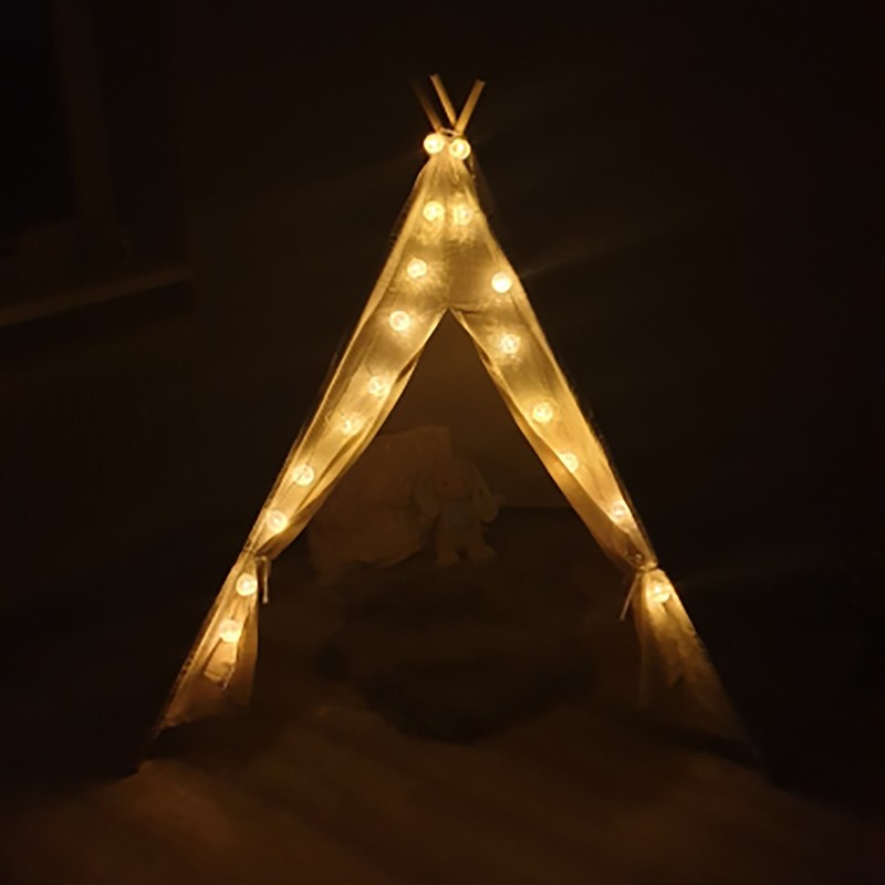 Wigwam cool, est venu rapidement, jours en 10! Assemblé facilement et rapidement, comme un cadeau met une guirlande avec des étoiles, qui fonctionne sur les piles, c'est mignon) L'instruction a été attachée, mais il vaut mieux regarder comment collecter dans la description