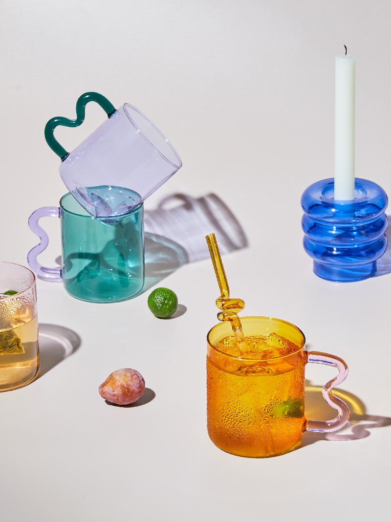 Tasses En Verre Colorées, Design Original, À Oreilles Ondulées Simples Faites À La Main, Pour Eau Chaude