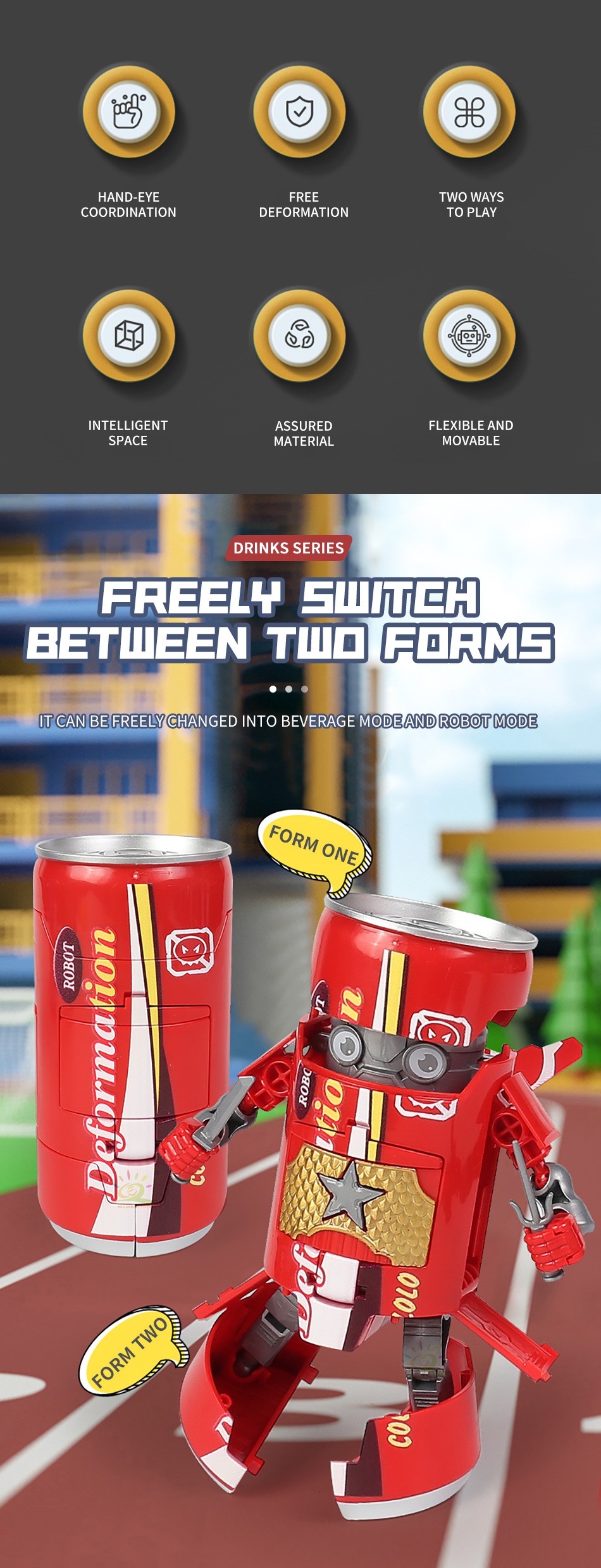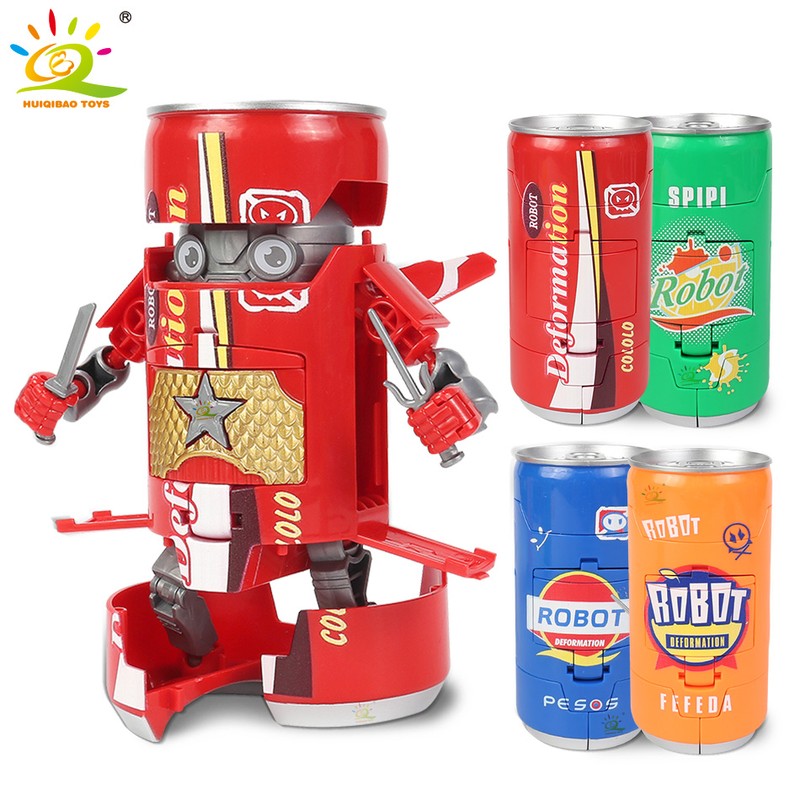 Huiqibao – Robot Soda Déformé Créatif, Modèle De Guerrier, Boisson Peut Déformer Jouets Figurines D'Action De Ville Robots Pour Garçons, Cadeau Pour Adultes