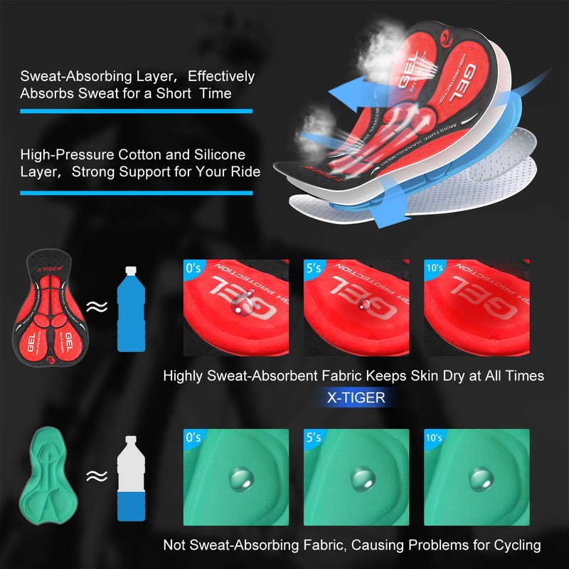 X-Tiger — Sous-Vêtement De Cyclisme, Rembourré En Gel 5D, 100% En Lycra Antichoc Short De Vélo Pour Cycliste, Nouvelle Version
