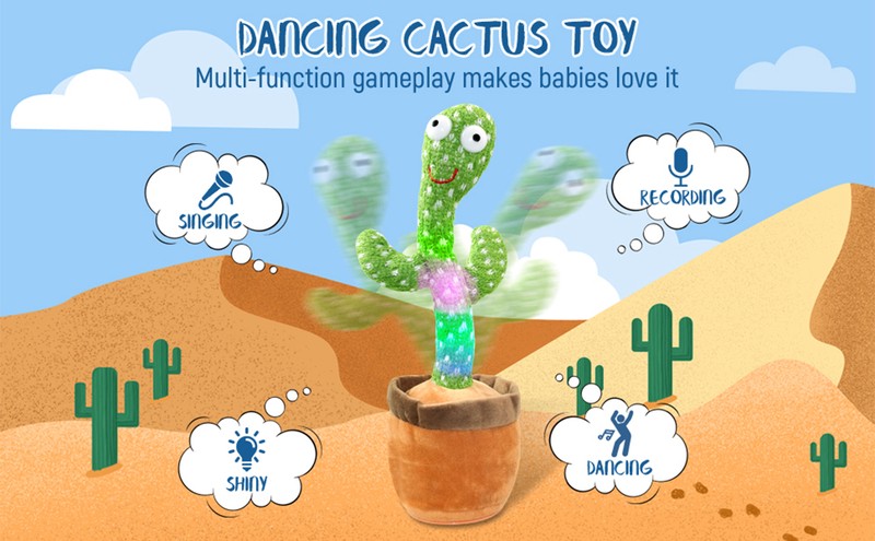 Jouet En Peluche Cactus Dansant, Jouet Électronique, Peut Chanter Enregistrer Éclaircir La Batterie Chargeur Usb, Cadeau Amusant Pour L'Éducation Précoce