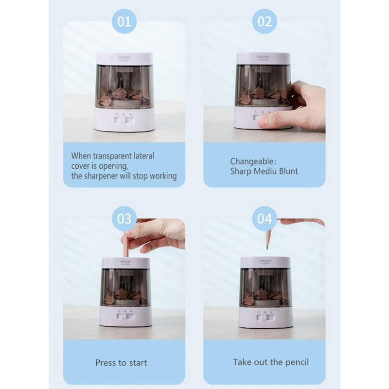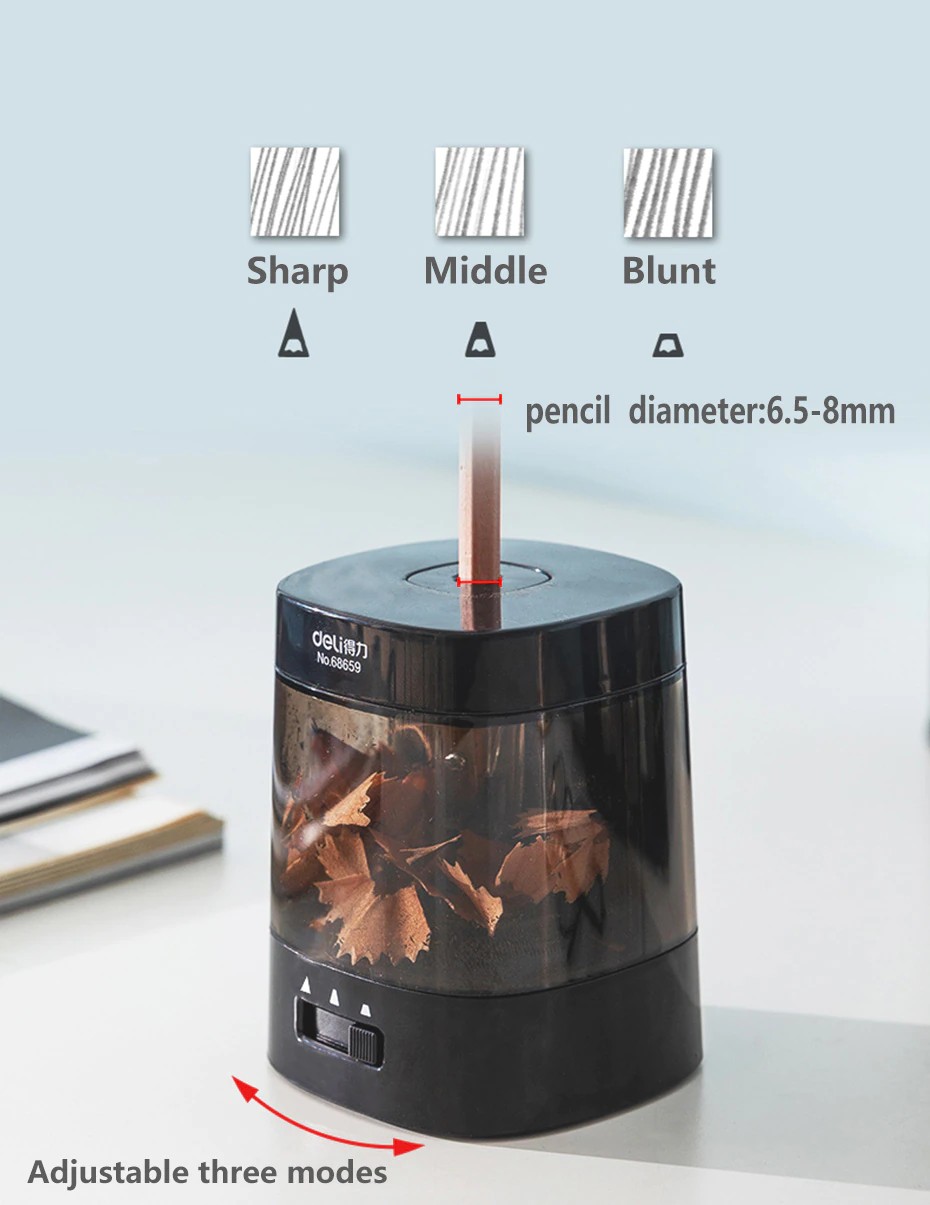 Deli – Taille-Crayon Électrique Automatique, 3 Modes Réglables, Papeterie Pour La Maison, Le Bureau Et L'École