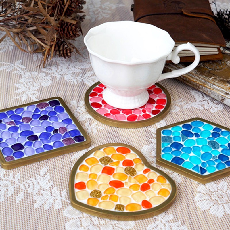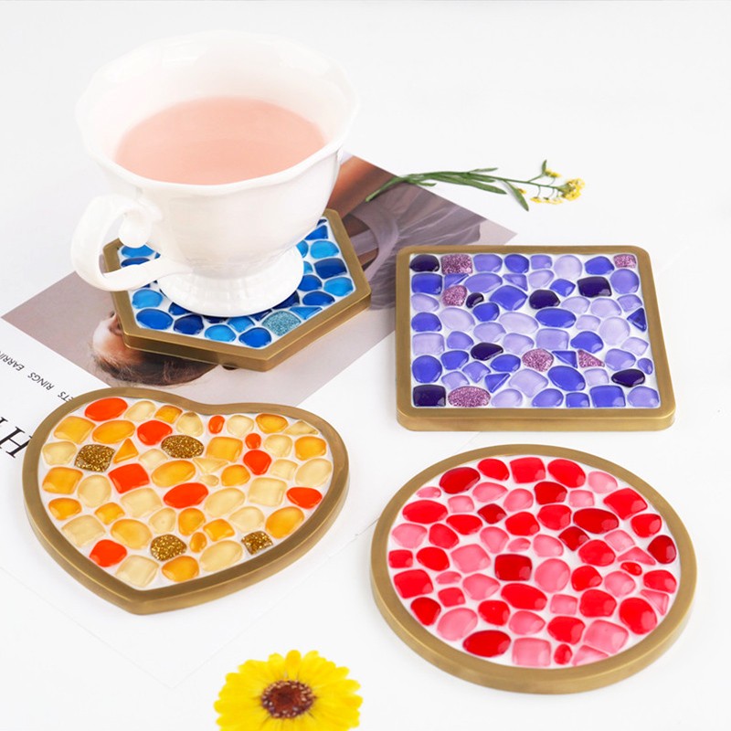Moule en Silicone de miroir de mosaïque irrégulière de carré rond Hexagonal d'amour
