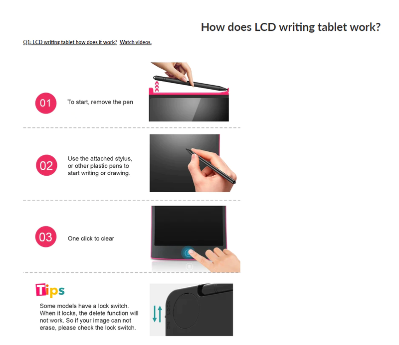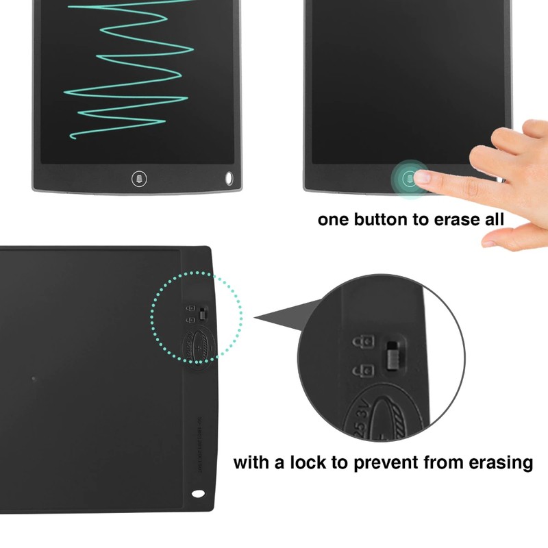 Ce tableau d'écriture LCD est comme un tableau de croquis, vous pouvez écrire et dessiner dessus, et lorsque vous appuyez sur le bouton, toutes les notes peuvent être effacées facilement. Cet écran n'est pas comme l'écran PC lumineux, l'écran PC peut avoir un mauvais effet sur les yeux lorsque vous utilisez longtemps. Pour notre tablette lcd, son écran n'apportera aucune fatigue oculaire lorsque vous écrirez et dessinez. L'écran LCD couleur a plusieurs zones de couleur, la zone est fixe et les traits de stylet affichent différentes couleurs à travers différentes zones de couleur. La zone de couleur de tout l'écran de l'écran LCD monochrome est verte et l'écriture manuscrite est verte.