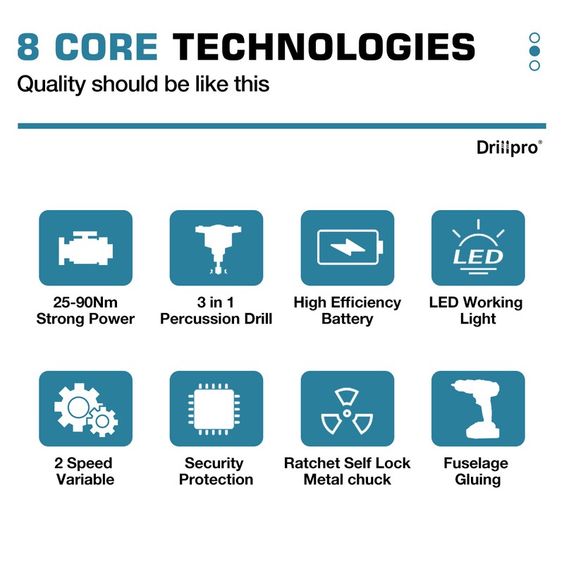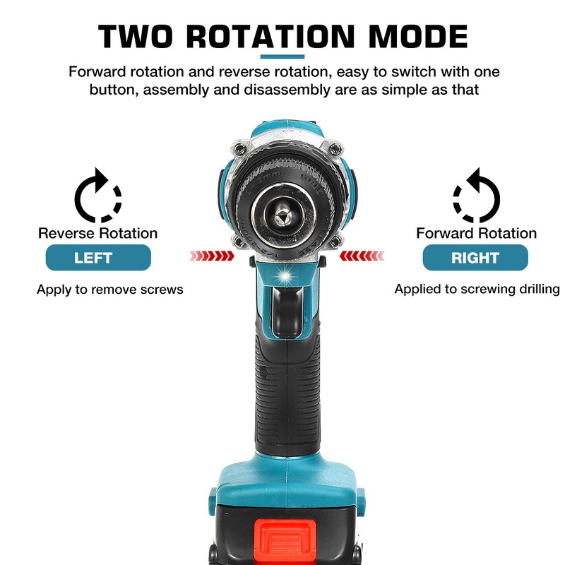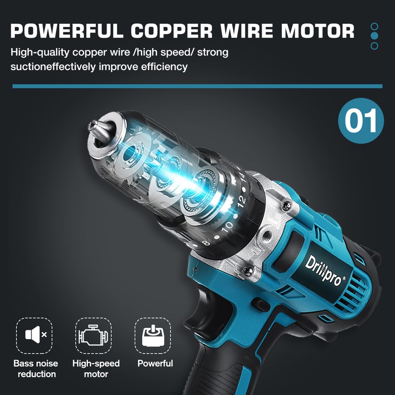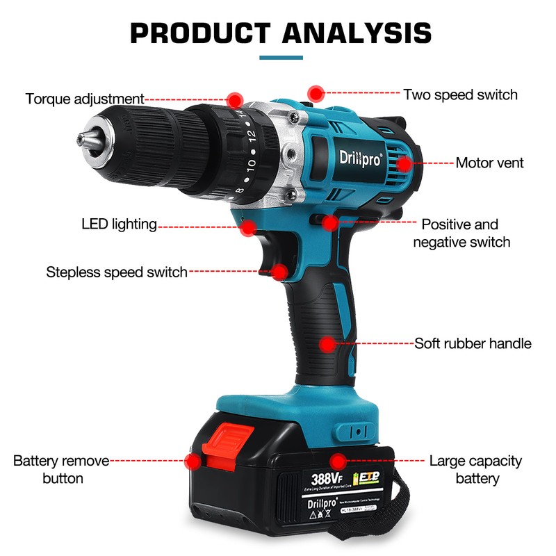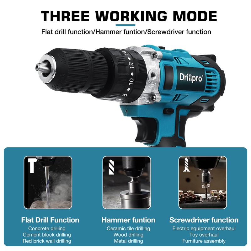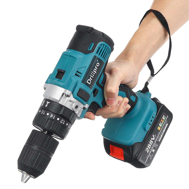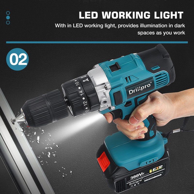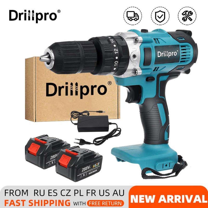 Drillpro Perceuse Électrique 3 En 1, Tournevis Sans Fil 13Mm, Marteau Perforateur, Outils Électriques Avec 2X15000Amh Batterie Li Pour Batterie Makita