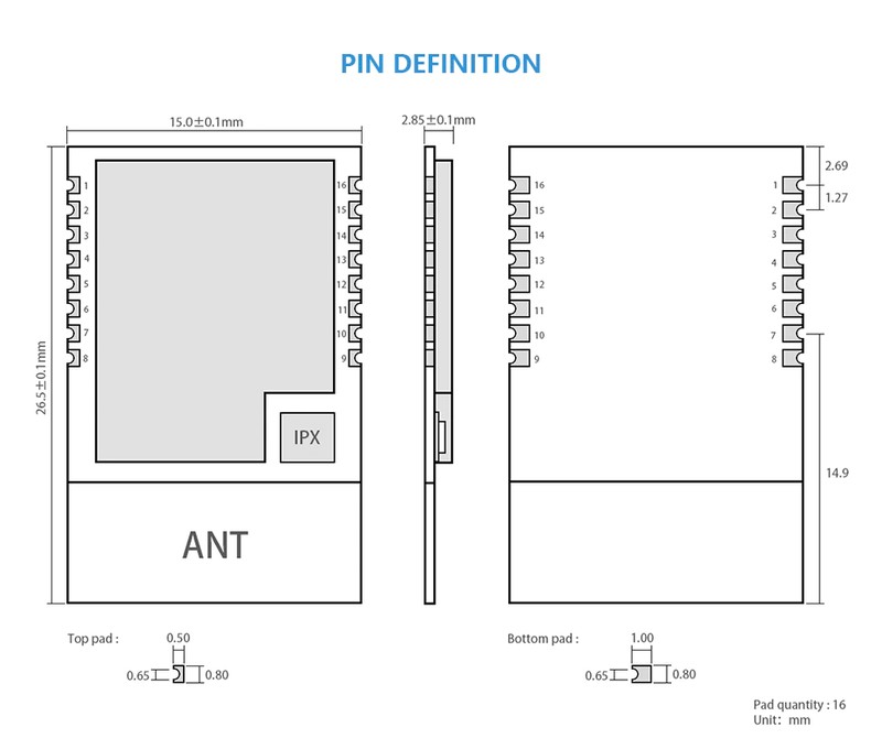 Type d'antenne | IPEX / PCB | 50Ω Impédance |