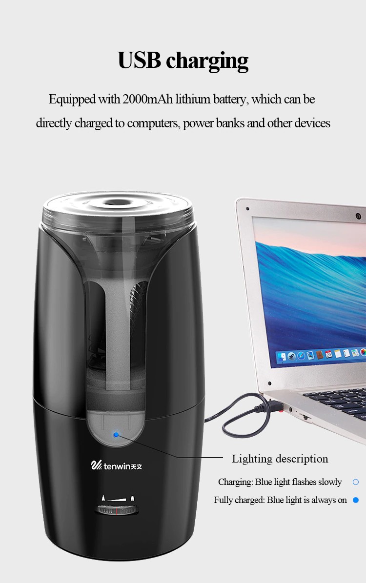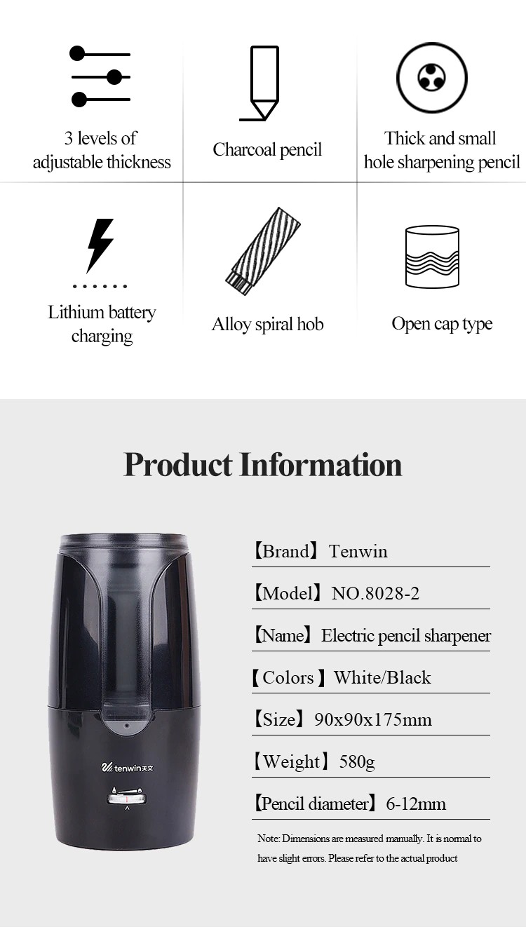 Taille-Crayon Électrique, Taille-Crayon De Grande Taille, Avec Arrêt Automatique Et Rechargeable Pour Crayons De 6 À 12Mm, Portable À L'École Et Au Bureau