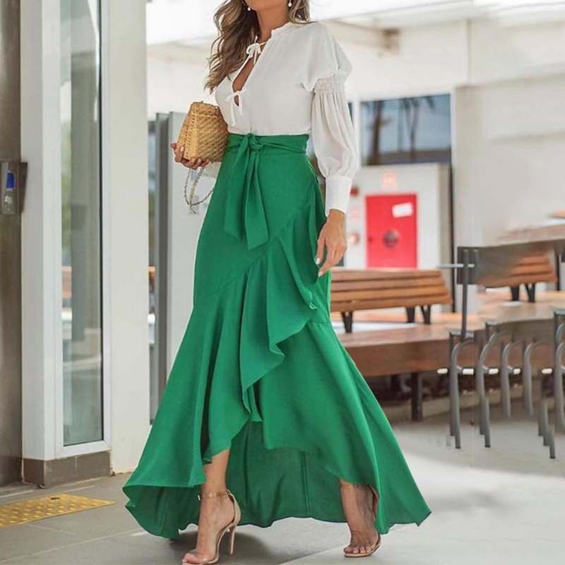 Longue Jupe Élégante Pour Femmes, Automne, Taille Haute Ceinture En File d'attente De Poisson Ample Décontractée Fête, Maxi