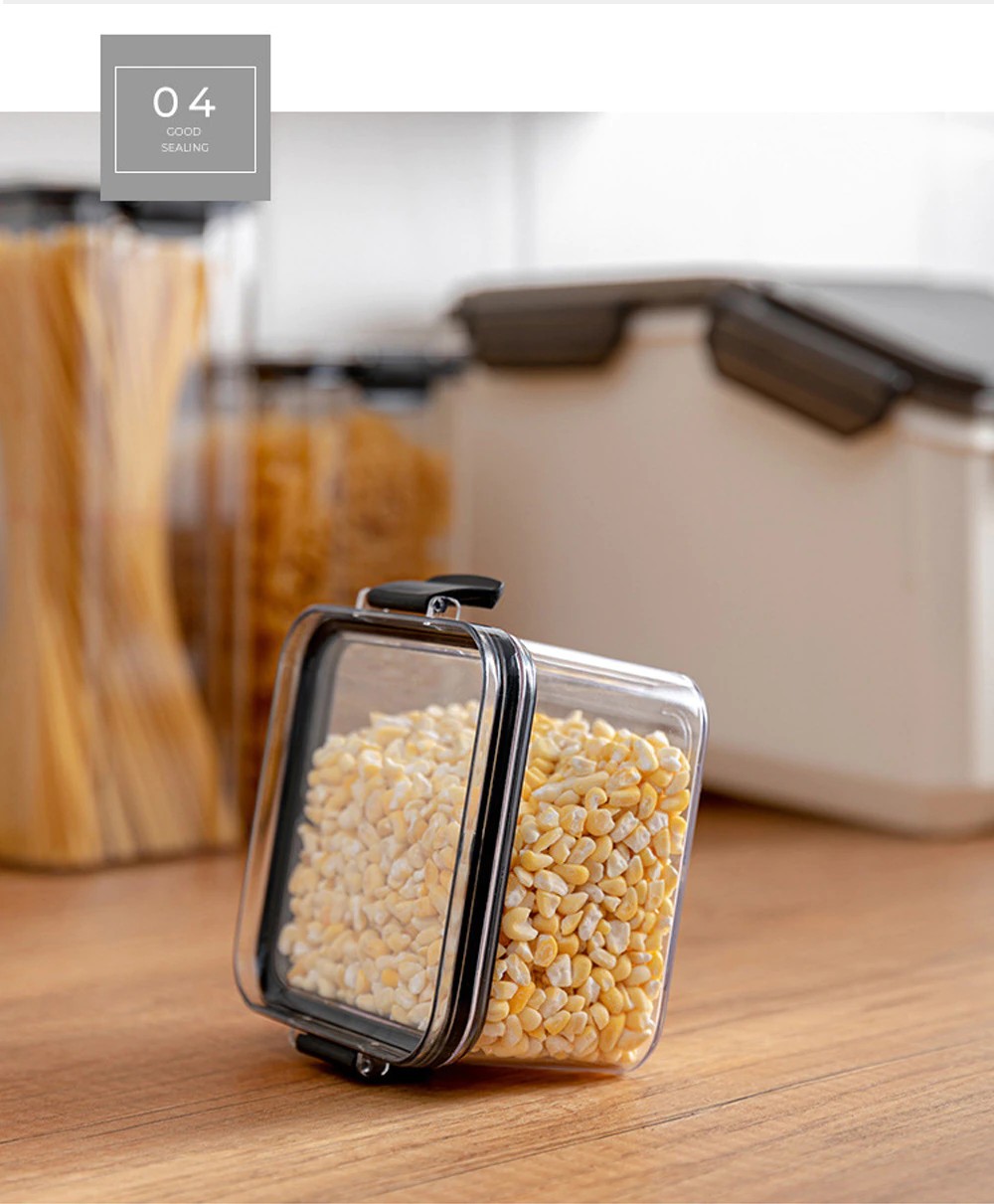 Peu encombrant et polyvalent. Parfait pour stocker des spaghettis, des fournitures de boulangerie, des céréales, de la farine, du sucre, de l'avoine, des pâtes, du riz, du café, du thé, des collations, des noix et d'autres produits secs.