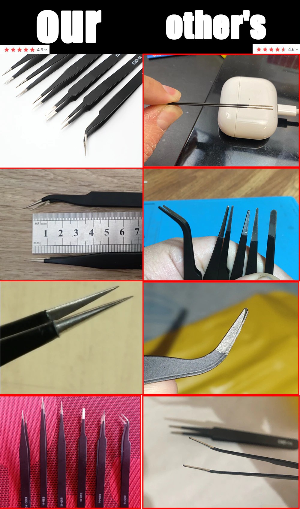 ★Notre produit est une pince de précision antistatique en acier inoxydable