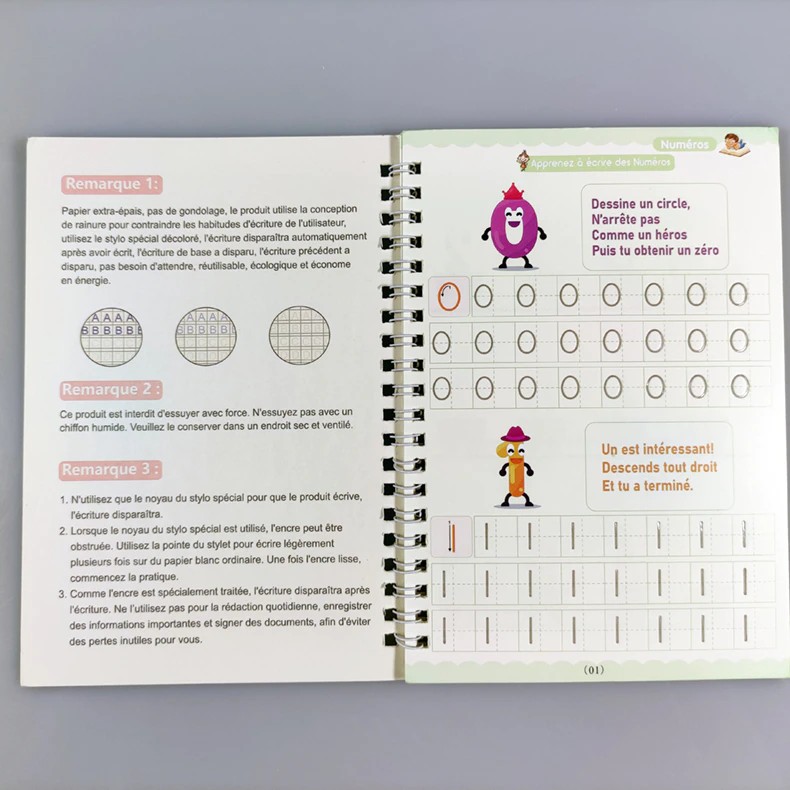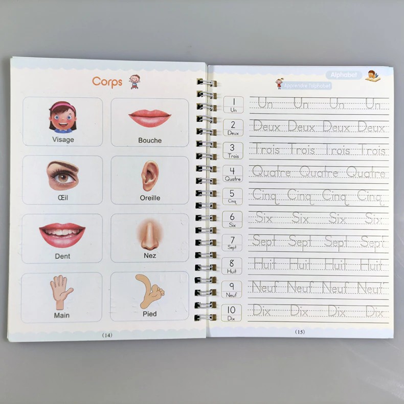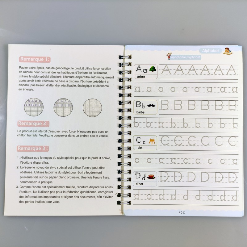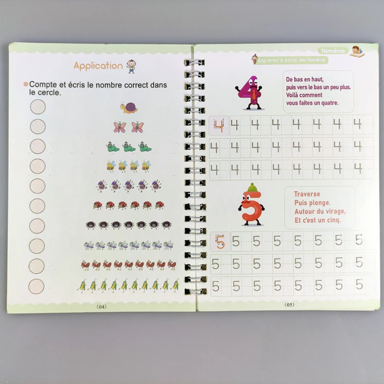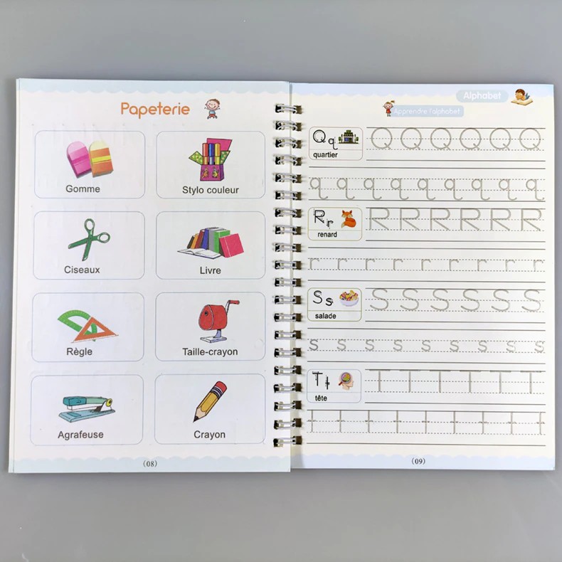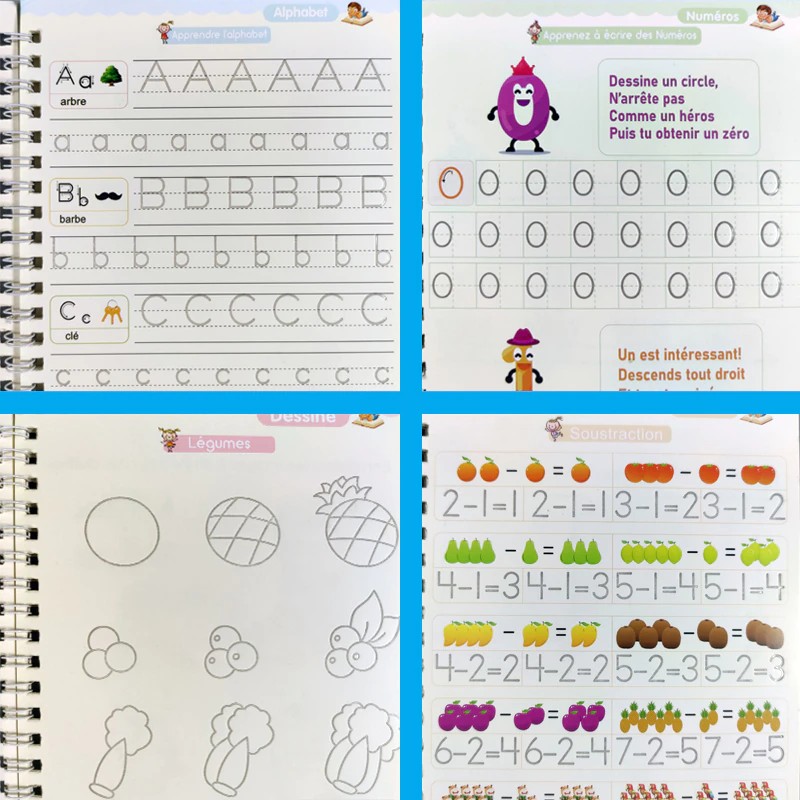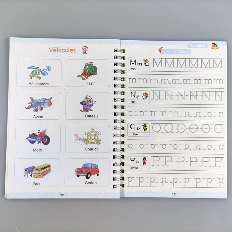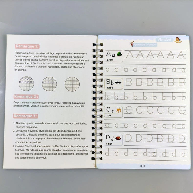 Cahier Rainuré D'Écriture Magique Français En 3D Pour Enfant, Livre D'Apprentissage Pour Apprendre Les Nombres Et Les Lettres, Idéal Pour La Pratique De L'Écriture De La Calligraphie, Parfait Comme Cadeau